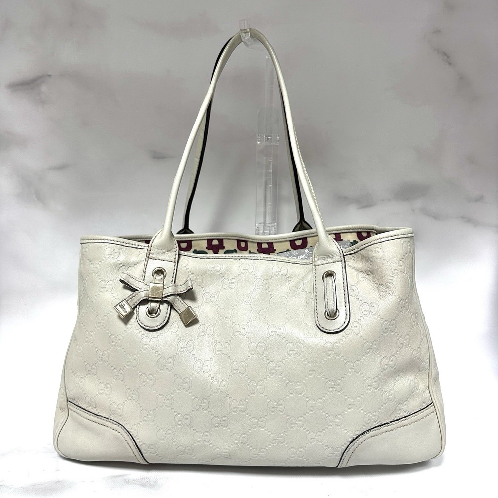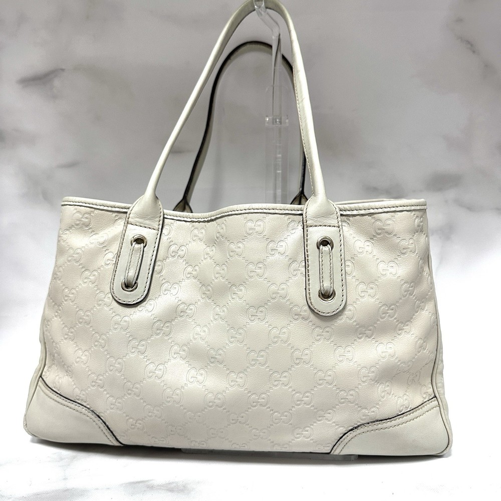 GUCCI Princy Tote Bag Sima Leather Ivory Authentic Thank you for visiting our store! We hope you enjoy shopping here:) ★Notes★ Please refer to the photos and descriptions carefully, as judgements of rank are our subjectivity. Also, please contact us if you have any questions. Description ■ Serial No. 163805 002404 *The items We sell are sourced from markets that specialize in luxury brands with trust. All Brand items have been appraised by an expert. ■Size Width approx. 14.57in(37cm) Height approx. 8.66in(22cm) Depth approx. 3.94in(10cm) Handle Drop approx. 8.27in (21cm) ■Appearance / Condition Rank AB There are scuff marks on the corners of the bag. Fading is observed on the handles. *Please check photos. ■ Inside / Condition Rank AB Brown stains are visible. *Please check photos. ■ Functional There is no problem in use. ■Color Ivory *Actual Colors may slightly differ depending on your PC monitor and lighting environment. ■ View of Rank S - New Brand new with tags. SA - UNUSED Unused may have insignificant scratches or slight discoloration due to storage or display. AA - MINT Unused or barely used, may have some insignificant scratches or stains. A - Excellent Used item, may have insignificant scratches and signs of usage. AB - Very good Used item, has some insignificant scratches and other signs of usage. B - Good Used item, has some scratches, stains and obvious signs of usage. BC - Decent Item has scratches, discoloration and other noticeable signs of usage. C - Usable Item has scratches, discoloration and other heavy signs of usage. D - Asis - For Repair Item has heavy damages that would require repair. Shipping To US Buyers - DDP Shipping For US shipments, we use DDP (Delivered Duty Paid) shipping, the safe and reliable delivery method recommended by eBay and shipping carriers to comply with the new customs regulations. The total amount you pay at checkout includes item price, shipping cost, import duties, taxes, and handling fees. No additional charges will be incurred. To International Buyers (Except US) Import duties, taxes, and charges are not included in the item price or shipping cost. These charges are the buyer's responsibility. Please check with your country's customs office to determine what these additional costs will be prior to bidding or buying. We always send the item with a tracking number. So please place an order without any concern on delivery. You can always track the delivery status. Shipping is only available to the address registered in eBay. If you want us to send another address, please change your address on eBay and then place an order. Shipping is available from Monday to Friday. Weekends are not available because freight (shipping) companies are closed. We do not mark merchandise values below value or mark items as "gifts" — Japan, US and International government regulations prohibit such behavior. Remote area surcharge may apply depending on the carrier's classification (we will contact you if applicable). Returns ★Notes on Returns★ Returns will only be accepted if the item is different from what is described in the product description. As a rule, returns, refunds, and exchanges are not accepted. Shipping charges will not be refunded. If you received free shipping service when you placed your order, you will be charged for the restocking fee and the shipping fee from Japan to the buyer. The shipping fee will be deducted from the refund amount. In the unlikely event that a directly managed or branded store determines that an item is fake, we will take the necessary recall measures. Just provide us with the information that clearly shows that the item is fake. Otherwise, we will not be able to make a decision. About Importer's Obligation To US Buyers For US shipments, we use DDP (Delivered Duty Paid) shipping. All costs including import duties, taxes, and charges are included in the item price. No additional costs will be charged to you. To International Buyers (Except US) Import duties, taxes, and charges are not included in the item price or shipping cost. These charges are the buyer's responsibility. Please check with your country's customs office to determine what these additional costs will be prior to bidding or buying. Thank you for your understanding.