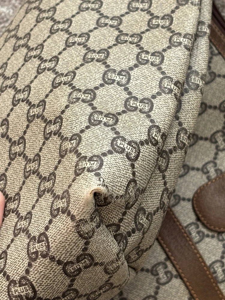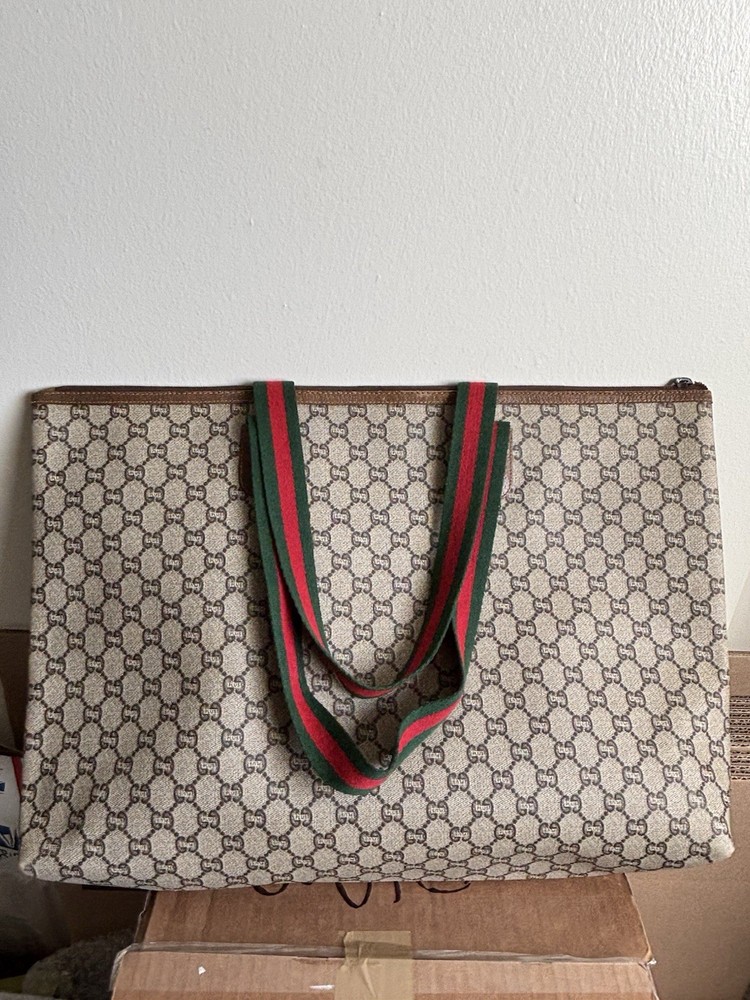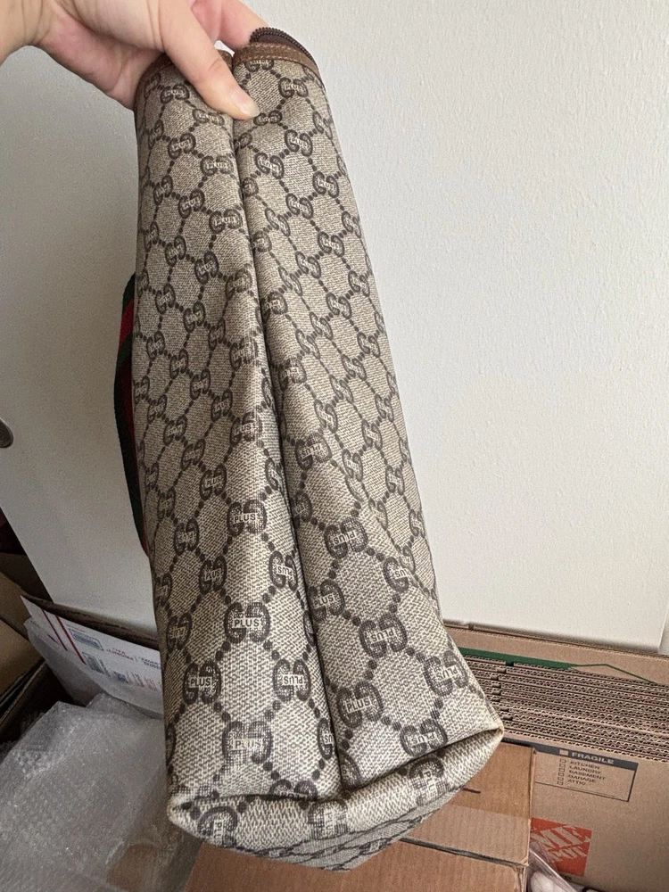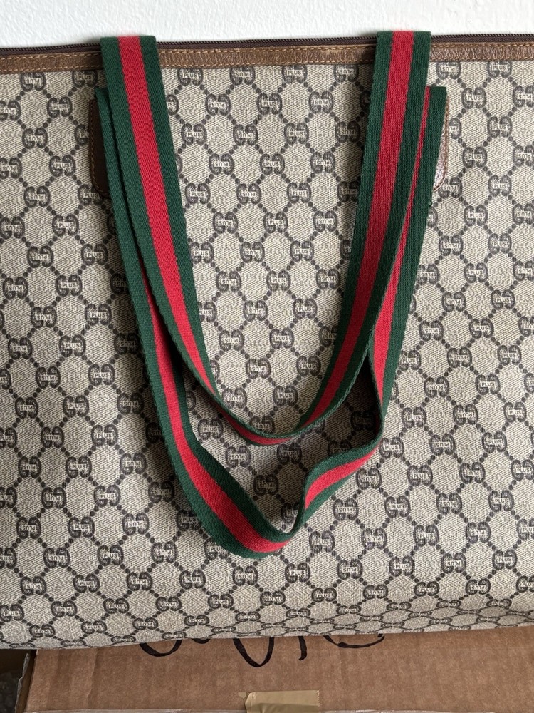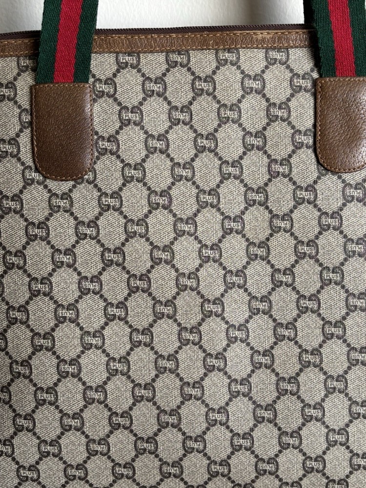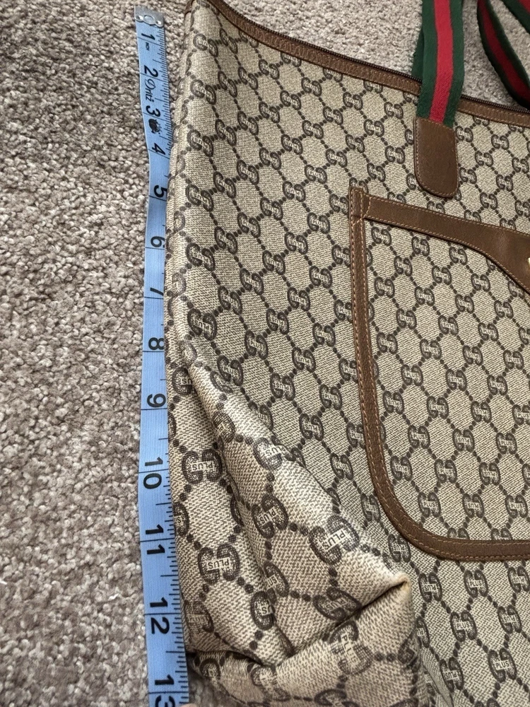 Authentic Gucci Sherry line Gucci PLUS extra large tote bag in very good shape and condition. Minor wear at bottom corner edges. Its zipper pull is missing so I added a Gucci leather zipper pull from another Vintage Gucci pLUS bag. Please check pictures. Monogram looks excellent. Very minimal rubbing on leather. Good deal! Price is Firm please. Get it before it’s gone, this will be gone within no time.