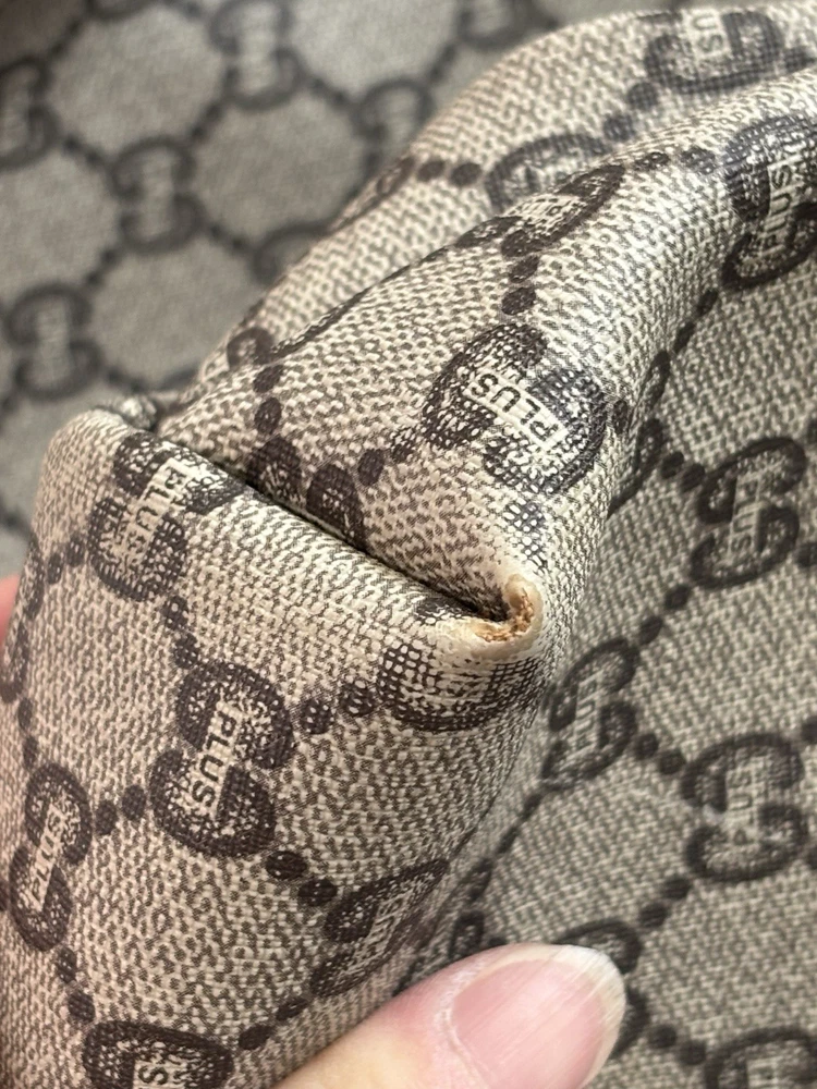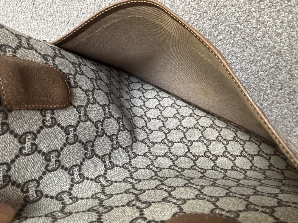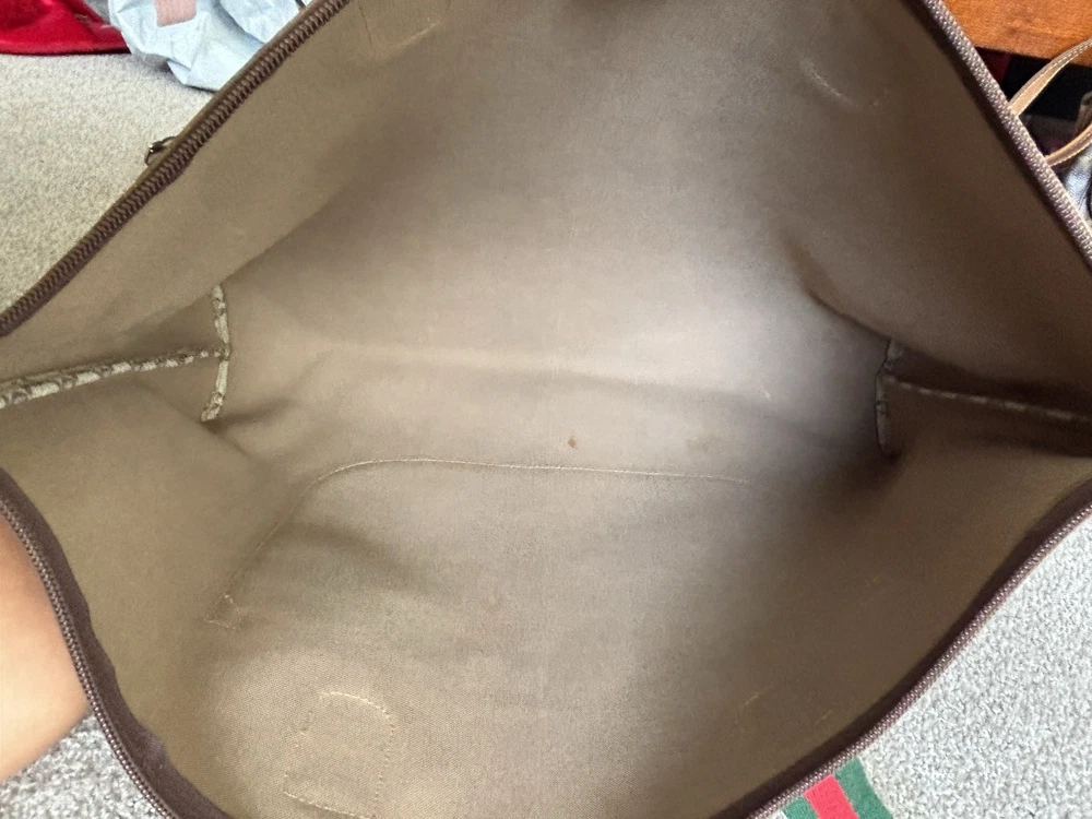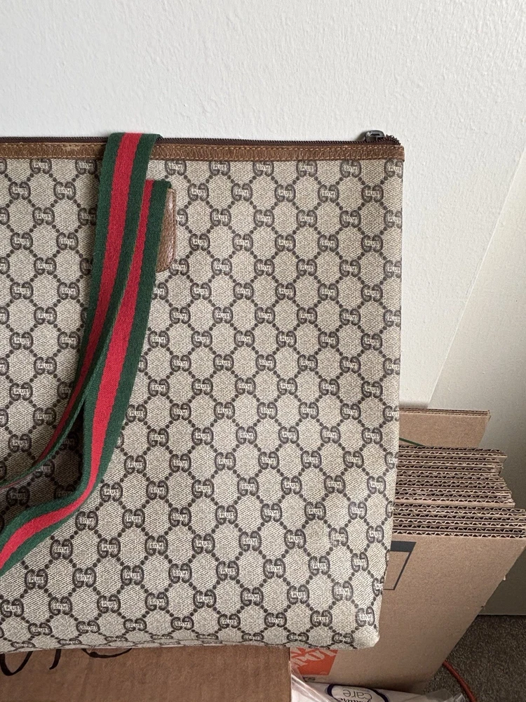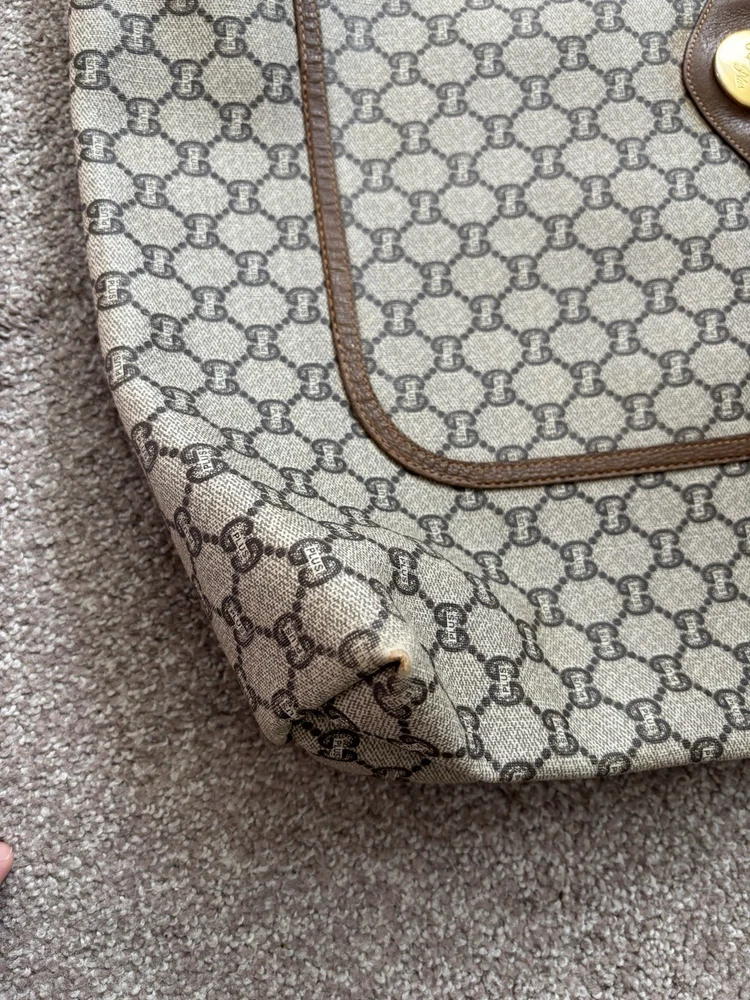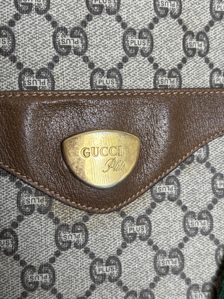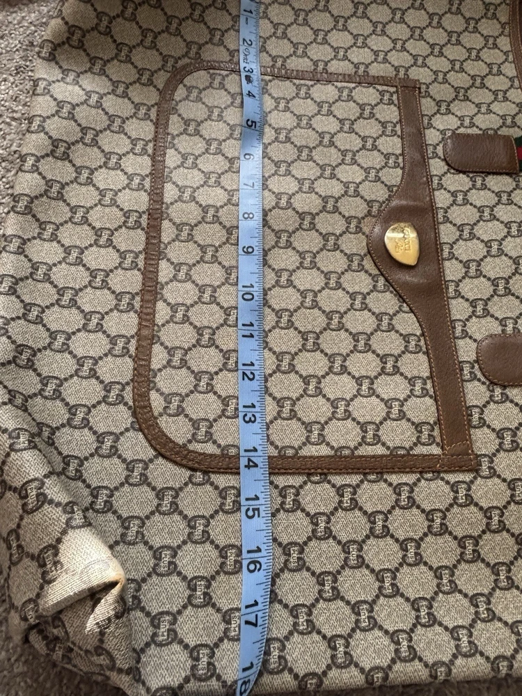 Authentic Gucci Sherry line Gucci PLUS extra large tote bag in very good shape and condition. Minor wear at bottom corner edges. Its zipper pull is missing so I added a Gucci leather zipper pull from another Vintage Gucci pLUS bag. Please check pictures. Monogram looks excellent. Very minimal rubbing on leather. Good deal! Price is Firm please. Get it before it’s gone, this will be gone within no time.