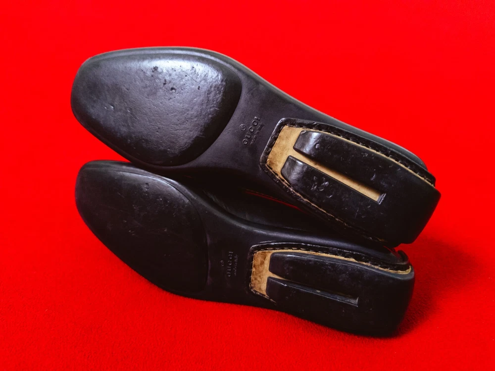Created with Eselt - Templates and Image Hosting for eBay Sellers Created with Eselt - Templates and Image Hosting for eBay Sellers Created with Eselt - Templates and Image Hosting for eBay Sellers GUCCI DESCRIPTIONS Classic Gold Horsebit Black Moccasin Loafers With Rubber Elements Outsole . Size US 4.5 | UK 4 | EUR 36.5 C Very Good Condition. Mark On The Skin (13th And 14th Photos). This Is Almost Imperceptible During Use. Overall Excellent . *** All measurements are approximate ! *** *** All photos were taken on a mobile phone. The color hue may be slightly different ! I try very hard to take clear and high-quality photos. I can also take additional photos if you ask ! *** Very Nice That You Were Interested In My Suggestions | See more ... Please ask if you need more information Shipping: I will ship by Standart Post Registered Airmail. I will ship the items in the next 1 business days of payment receive, but it could take 3 days for the post office to process the packages and left the country. Shipping estimated time: 16-30 Working days ATTENTION !!! To the countries of Latin America and Africa delivery may take 20-60 days