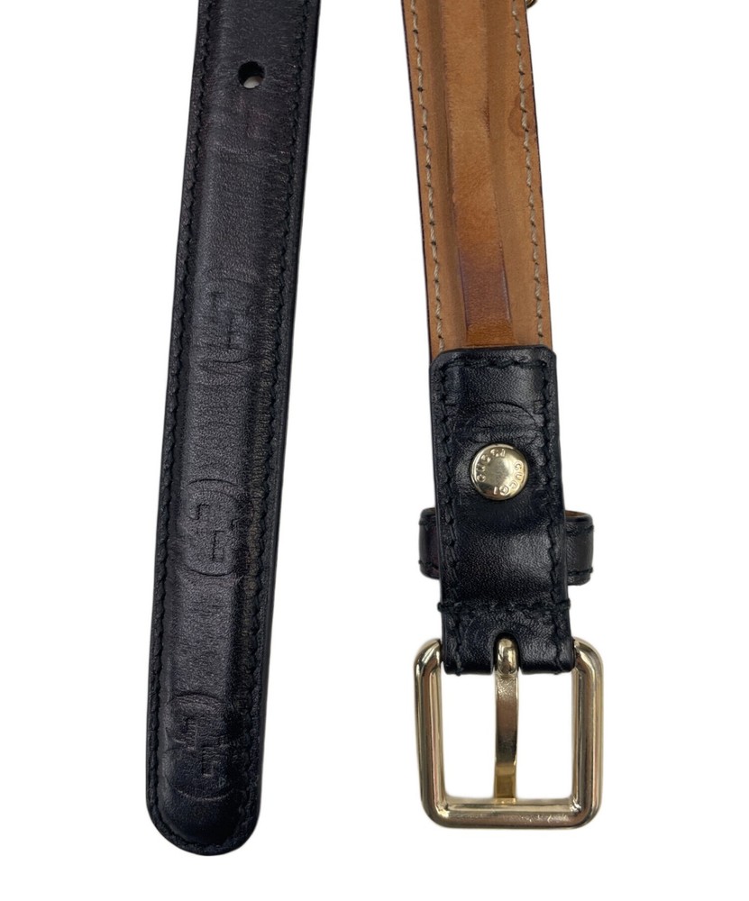 $ 85.28GUCCI GG Logo Black Leather Belt with Buckle Authentic Made in Italy Pre-Owned Hardware