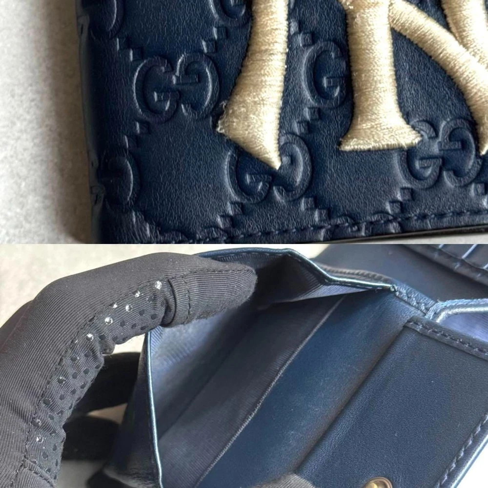 Thank you for browsing♪ Condition Description Model Number: 547785 / 547785 2149 Style: Bifold Wallet / Compact Wallet Category: Unisex – Suitable for Men & Women Material: Shima Leather with GG Embossing, NY Embroidery Color: Navy Blue with Silver-Tone Hardware Closure: Bifold Type: Rare Collaboration / Collector’s Item 📏 Approximate Measurements: Height: 3.9 in (10 cm) Width: 4.3 in (11 cm) Depth: 0.8 in (2 cm) 📂 Interior Specifications: 6 Card Slots 1 Coin Pocket 2 Bill Compartments 🔍 Condition: Good Pre-Owned (See Photos) Light surface scuffs from previous use Minor dirt/staining inside the coin pocket Overall still in very good, usable condition Please refer to all photos for a detailed view. 📦 Included: Wallet only (no box or accessories included) 🛡️ Authenticity Guarantee This wallet was purchased from a professional Japanese reseller and has been authenticated. We only offer 100% genuine, verified items. Buy with confidence ✅ Please Note shipping from Japan. Policy Payment You can use various payment methods based on eBay Managed Payments. Import duties, taxes and charges are not included in the item price or shipping charges. These charges are the buyer's responsibility. Cancellations & Returns Cancellation or returns will be accepted only if the item has an obvious problem that was not mentioned in the listing description. If that, please let us know within 3 days you got the item. Buyer is responsible for shipping costs and any charge incurred shipping products back. International Buyers Import duties, taxes and charges are not included in the item price or shipping charges. These charges are the buyer's responsibility. Please check with your country's customs office to determine what these additional costs will be prior to bidding/buying. These charges are normally collected by the delivering freight (shipping) company or when you pick the item up - do not confuse them for additional shipping charges.