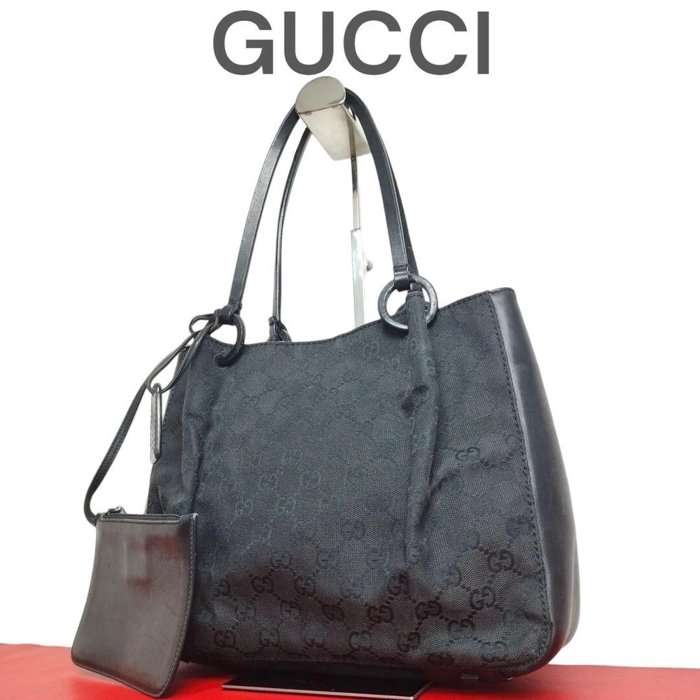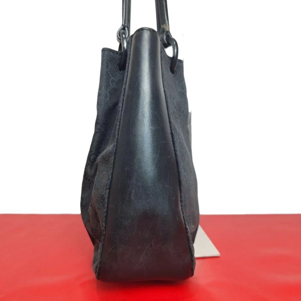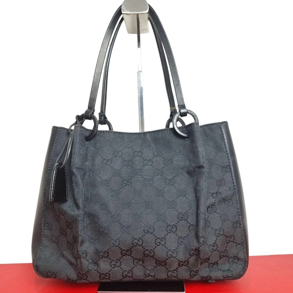 GUCCI's Black GG Canvas and Black Leather Tote Bag Purse W/pouch Used