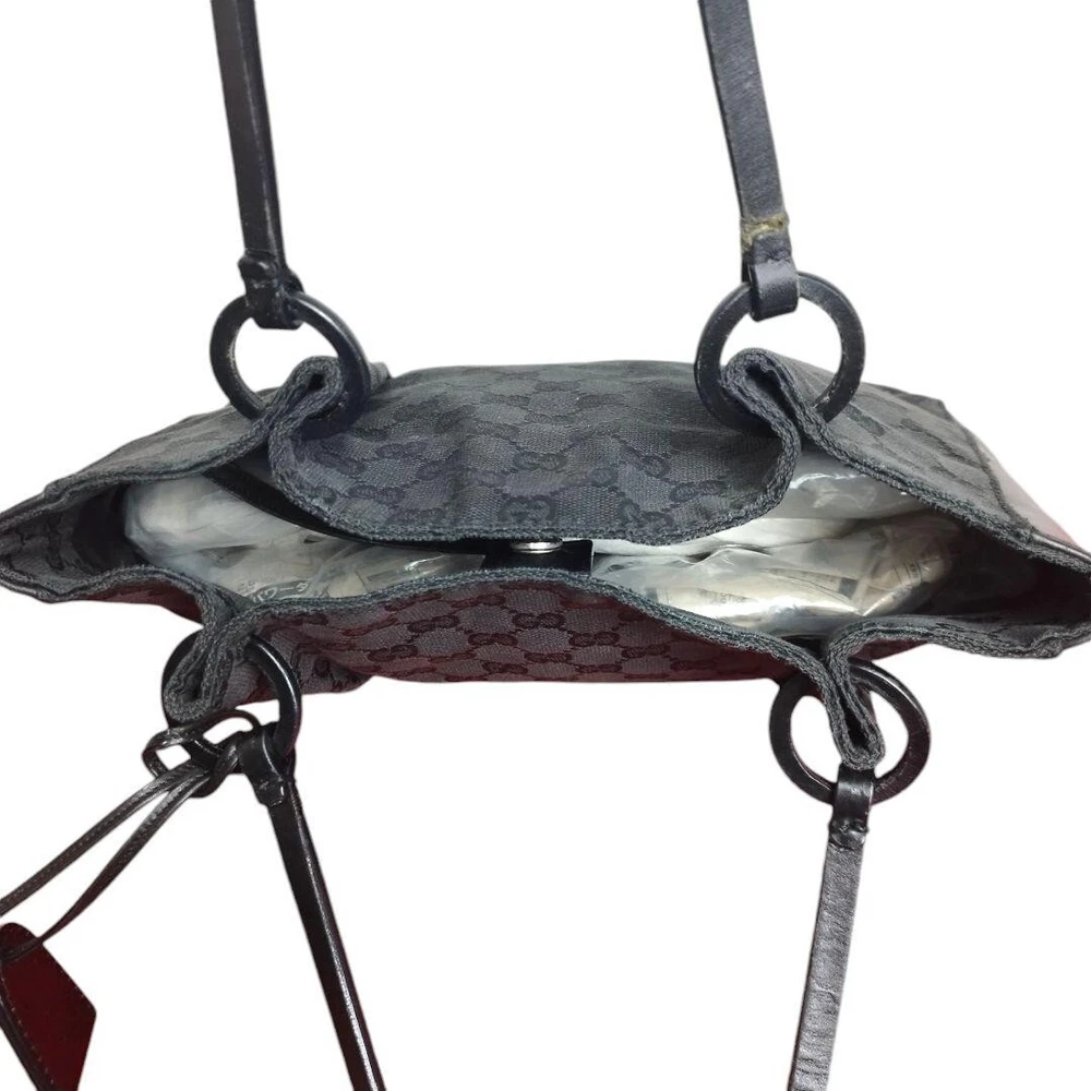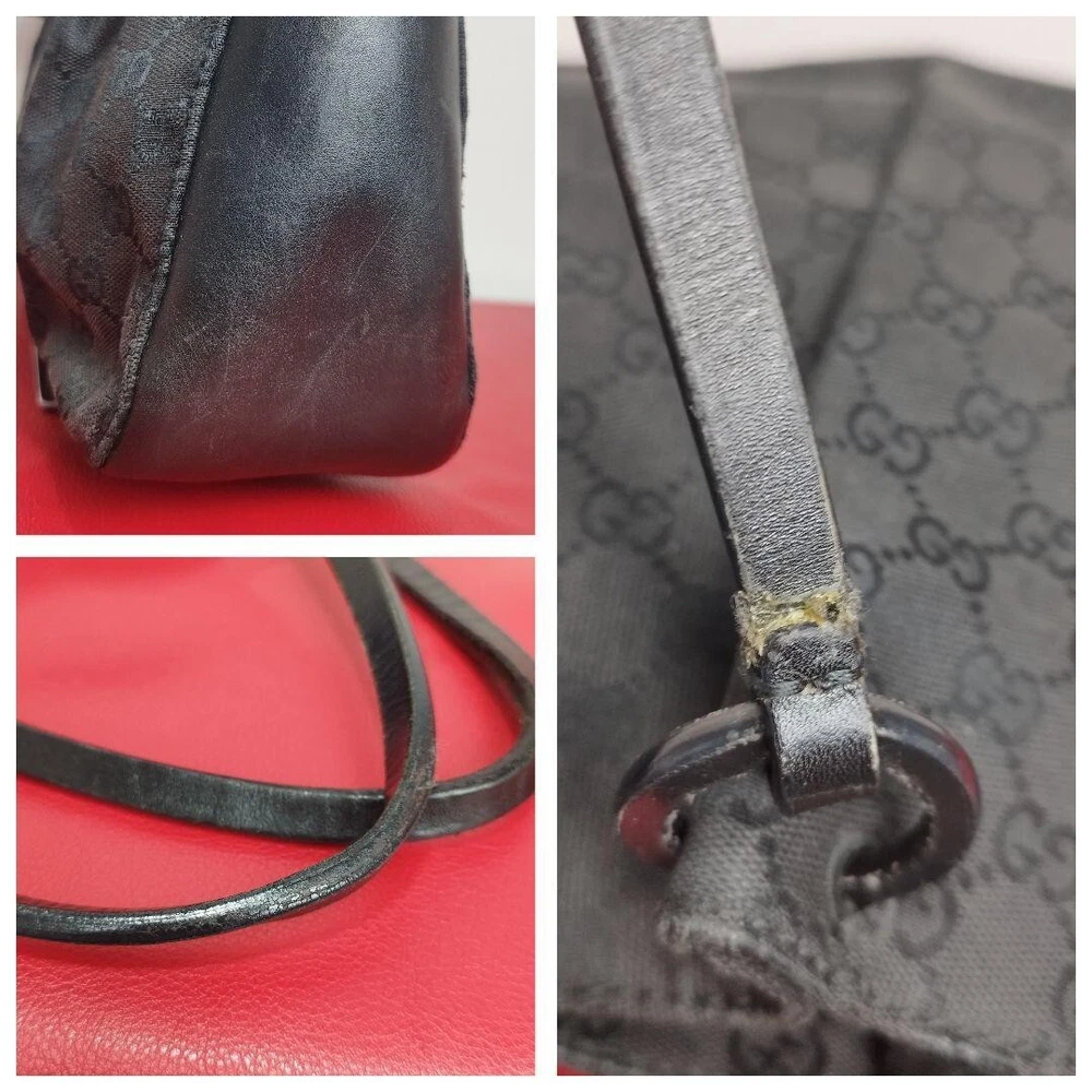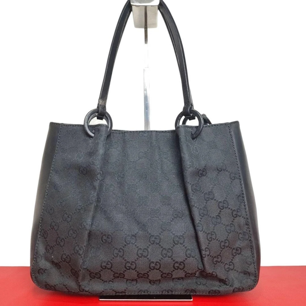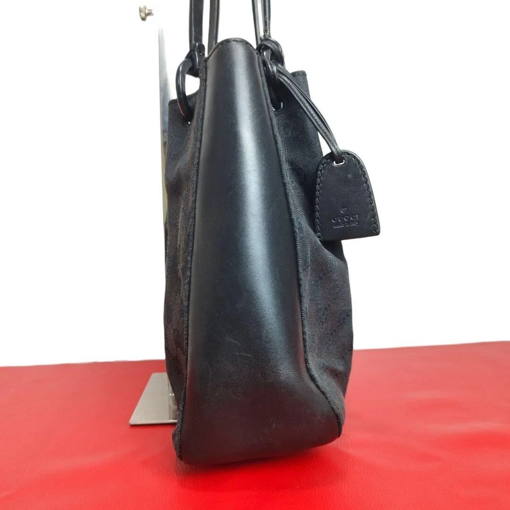 GUCCI's Black GG Canvas and Black Leather Tote Bag Purse W/pouch Used