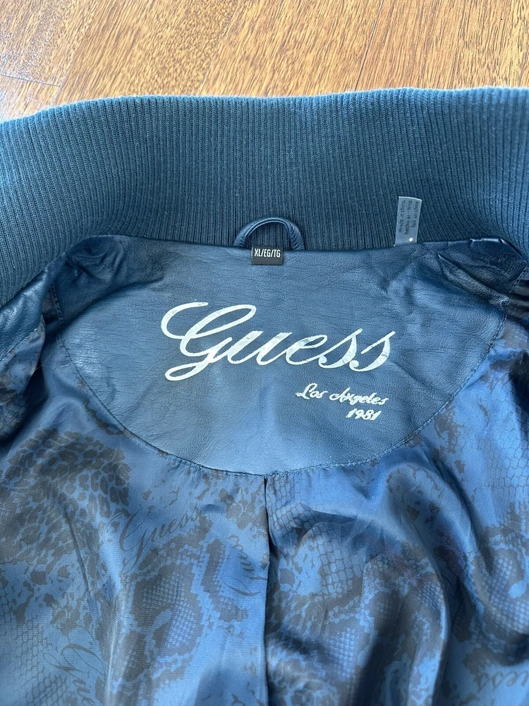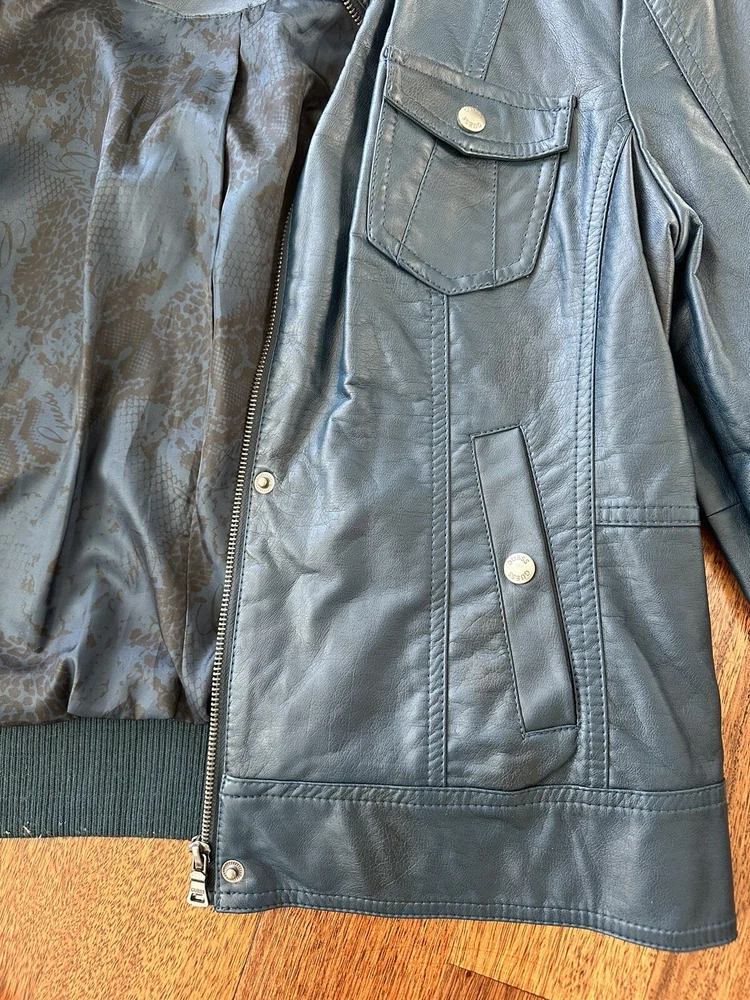 GUESS Women's Vega Leather Jacket XL Extra Large Dark Green Good used condition Smoke free pet free home Length 23.5 inches Underarm to underarm 22 inches