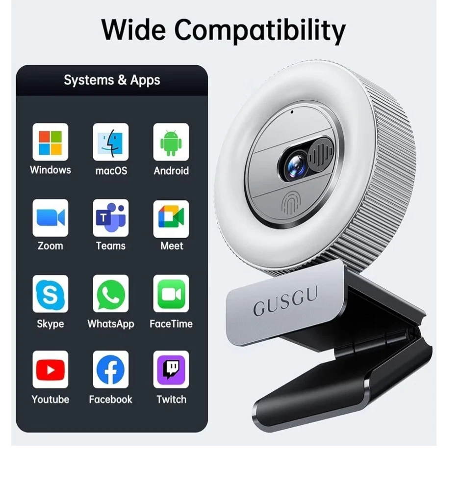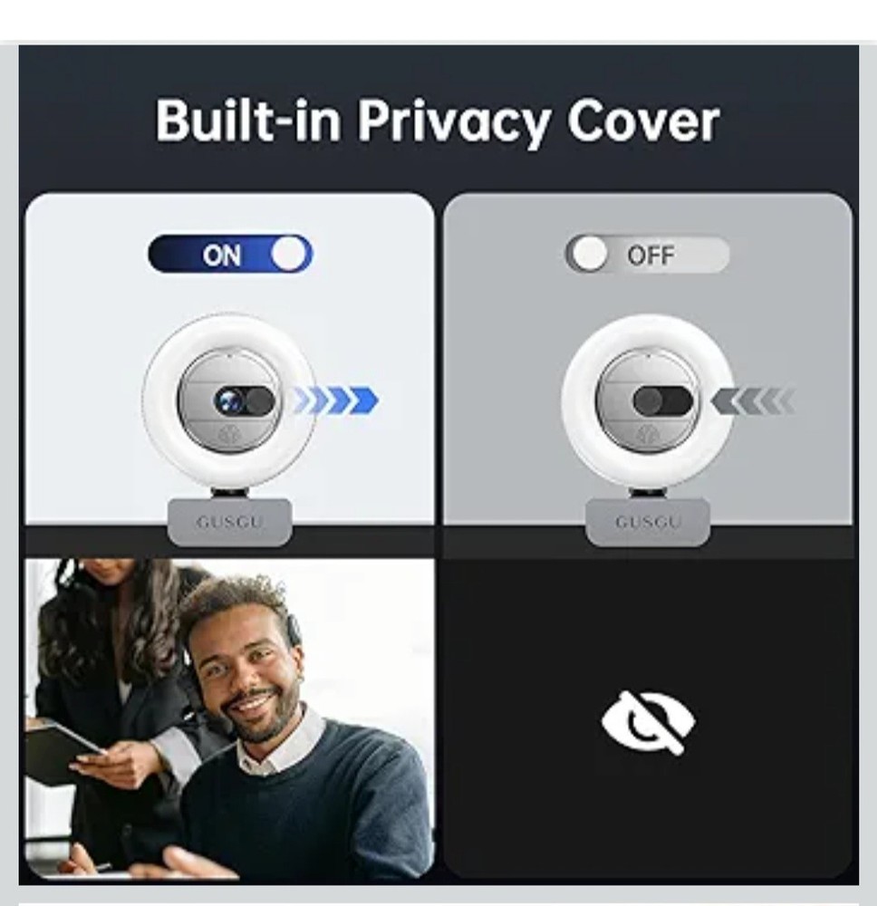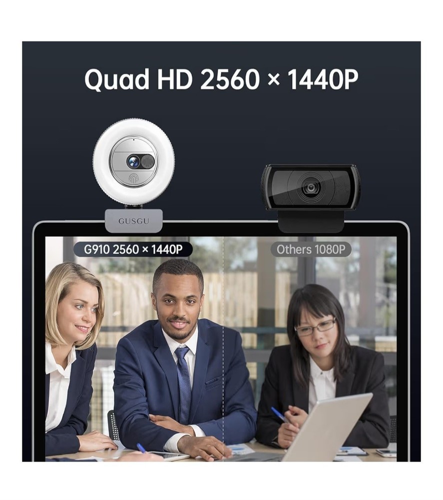 GUSGU G910 2K Quad HD Webcam for PC, with Microphone & Light & Privacy Cover, We