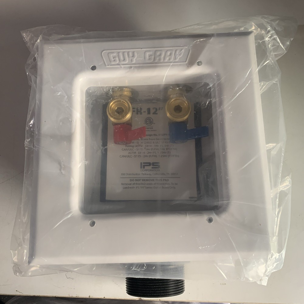 The GUY GRAY FR-12 Fire-Rated Washing Machine Outlet Box 82567 FRM12S is a high-quality plumbing fixture designed for use in residential or commercial settings. With a fire-resistant design, this washing machine outlet box provides a secure and safe outlet for connecting washing machine hoses. The Guy Gray brand ensures reliability and durability, making it a trusted choice for home improvement projects involving plumbing fixtures.