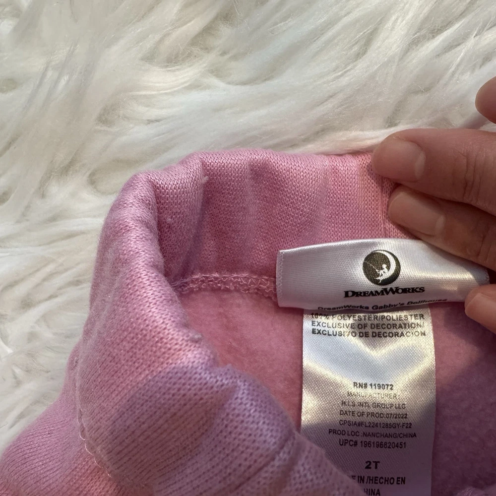 Details: • Brand: DreamWorks • Character: Gabby (Gabby’s Dollhouse) • Size: 2T (Toddler Girls) • Color: Pink • Set Includes: Sweatshirt & Jogger Pants • Sleeve Length: Long Sleeve • Neckline: Crew Neck • Fit: Regular • Material: Cotton blend • Condition: Pre-owned, excellent used condition with light signs of wear • Features: • Soft & comfortable fabric • Elastic waistband joggers • Ribbed cuffs • Cute character graphics • Easy care Smoke & Pet Free Home Ships Fast!
