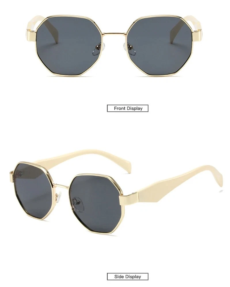 Gafas De Sol Retro Mujer Poligonales Montura Metálica Decorativas Diseñador Lujo Descripción: Tipo de elemento De moda y de moda Escenarios aplicables exterior Tipo de producto Gafas de sol de moda tipo de estilo de forma especial Ancho de la lente 51mm Altura de la lente 47mm Material de las lentes Plástico Nombre del departamento ADULTO Género MUJER Material del marco Aleación Atributo óptico de las lentes UV400 Tipo de artículo GAFAS Tipo de gafas Gafas de sol
