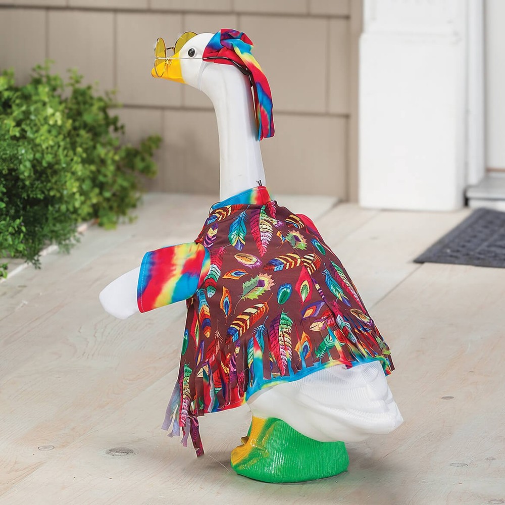 An official Gaggleville Goose outfit!Transform your yard into a groovy paradise with this Hippie Goose Outfit. This far-out outfit will turn your feathered friend into the ultimate symbol of peace and love. The hippie lawn goose outfit comes with John Lennon style glasses, a matching tie-dye shirt and head scarf, fringe vest and peace necklace. Whether you're a free spirit or simply appreciate a laid-back vibe, this hippie goose costume is a fun way to show off your enthusiasm for love, peace and geese. Goose costume is made from brushed tricot, for indoor/protected use. Imported. By Gaggleville. Powered by Frooition Buy one, get one at 15% off! On All Products Storewide SALE Holidays Home Kitchen Office Health Beauty Apparel Jewelry & Accessories Outdoor Entertainment Candy Shoppe Intimacy Automotive Accessories Hippie Large Goose Outfit by Gaggleville Gaggleville Hippie Goose Outfit, Fits Large 23" H Statue, by Fox Valley Traders Item Description An official GagglevilleTM Goose outfit! Transform your yard into a groovy paradise with this Hippie Goose Outfit. This far-out outfit will turn your feathered friend into the ultimate symbol of peace and love. The hippie lawn goose outfit comes with John Lennon style glasses, a matching tie-dye shirt and head scarf, fringe vest and peace necklace. Whether you're a free spirit or simply appreciate a laid-back vibe, this hippie goose costume is a fun way to show off your enthusiasm for love, peace and geese. Goose costume is made from brushed tricot, for indoor/protected use. Imported. By GagglevilleTM. About Us About Us Payment Shipping Customer Service About Us Welcome to Fox Valley Traders on ebay, where we specialize in providing an evolving selection of one-of-a-kind products at affordable prices. With roots dating back to 1935, our knowledgeable team is dedicated to bringing you high-quality, functional, and unique household products and gifts that won't break the bank. Our mission is to continuously innovate and improve items based on customer needs and industry trends. We are the proud owners and developers of multiple brands, including Miles Kimball, Walter Drake, Easy Comforts, Holiday Peak, OakRidge, LivingSure, Exposures, NativeRemedies and PetAlive. Learn more about these brands and their product offerings below. We invite you to spend some time in our ebay storefront. Shop around, explore our brands, and read what other satisfied customers are saying. Let us know how we can help - we would be honored to earn your business! Miles Kimball specializes in a wide variety of festive holiday decorations, handy kitchen gadgets, storage and organization solutions, gardening supplies, home décor, table covers, pets supplies, and gifts for everyone! We strive to delight our customers with hard-to-find gadgets and personalized gifts that are unique, unusual, and unexpected. Walter Drake has an extensive line of products that are functional problem-solvers for your home. Find great values in kitchen gadgets, cookware and bakeware, lawn and garden, bedding, calendars, and office supplies. Easy Comforts strives to make difficult times more comfortable, while helping you (or someone you care about) find solutions to life's physical challenges. Discover value-priced health and personal care items including home security, bathroom safety, daily living aids, diabetic socks, dressing aids, incontinence solutions, and pain remedies. Holiday Peak is your one-stop holiday shop! Find seasonal décor to bring a warm and inviting holiday atmosphere to your home all year. We offer pre-lit, fully decorated Christmas trees, unique Christmas tree ornaments and heartwarming Christmas cards for the winter season. Keep your festive spirit alive all year with our seasonal indoor and outdoor decor for Valentine's Day, St. Patrick's Day, Easter, patriotic and fall seasons . OakRidge offers top quality home items at an affordable price. Bring the warmth and comfort of home to any space with our exclusive bed linens, bath essentials, small furniture, floral décor, and other home furnishings. LivingSure is on a mission to develop products that will help keep you safe, secure, and independent both inside your home and out. Find smart solutions for personal safety, home security, emergency radios, auto blankets, flashlights, ladders, step-stools, and more. Exposures knows the value of special moments and experiences and wants to help you preserve them forever. Celebrate life's memories with our exclusive photo albums, frames, gifts, and home décor. NativeRemedies and PetAlive offer homeopathic health and wellness products for your whole family, including your pets! Enjoy our quality herbal and natural remedies for treating common ailments. Payment Payment We accept PayPal payments only. Sales Tax: For shipments to Wisconsin addresses, we are required by State law to collect Sales Tax. Shipping Shipping In order to keep things simple for you, Fox Valley Traders offers $1.99 shipping on Ebay for all Continental US Street and PO Box addresses. We use standard shipping for all orders in the continental US. Please allow 7-9 days for delivery Customer Service Customer Service If you have any questions about the item, please click the "Ask a question" link below. All returns must be made within 45 days from the date of shipment. We carefully inspect orders prior to shipment; upon receipt, please inspect your purchase and notify us of any damage. We will arrange for a prompt replacement. Shipping charges will not be reimbursed. Please contact us through our Ebay account for information on how to return an item. *All returns will be accepted unless otherwise noted in item description.* More Items! View more great items Gaggleville Santa Goose Outfit Bundle - Includes One Large Santa and One Baby Sa $49.56 Gaggleville Turkey Goose Outfit Bundle - Includes One Large Turkey and One Baby $54.80 Gaggleville Large Goose and 3 pc Holiday Outfit Bundle $104.96 Gaggleville Football Goos