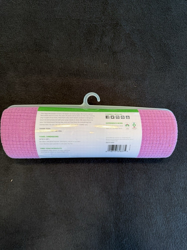 The Gaiam NWT Yoga Microfiber Towel in Pink is a full-size, non-slip yoga mat made from soft and durable microfiber material. With dimensions of 24”W x 68”L, this rectangle-shaped towel is perfect for both men and women practicing yoga. The pink color adds a pop of fun to your workout gear, while the grippy feature ensures stability during your yoga routines. Whether you're a beginner or a seasoned yogi, this Gaiam towel is a must-have for your yoga practice.