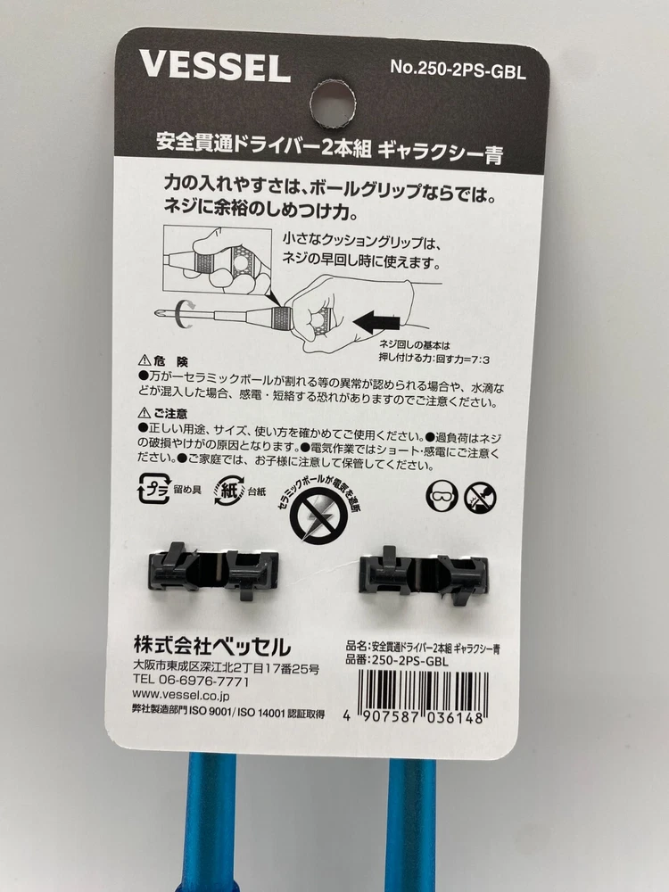 Description [ Uses] For chipping in electrical work, and removing screws from switchboards and terminal blocks. [Features] Head style: plus/minus Materials: Ceramic ball: ceramic, nut: soft steel wire, shaft: Si-Cr-V steel, handle: CA+TPE ●Limited color Galaxy (Blue) ●Built-in ceramic ball that does not conduct electricity. ●Uses zirconia ceramic, which is the strongest, most rigid, and most abrasion-resistant of all ceramics. ●Large nut that can be hit with a hammer. ●The cutting edge is black point processed with high precision. Shipping We will ship by Speed PAK Economy International Buyers - Please Note: Import duties, taxes, and charges are not included in the item price or shipping cost. These charges are the buyer's responsibility. Please check with your country's customs office to determine what these additional costs will be prior to bidding or buying. Thank you for your understanding.