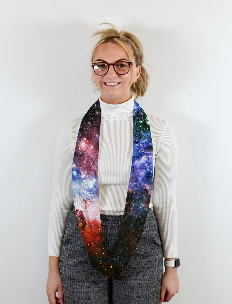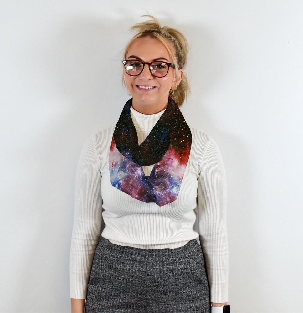 Department: Women Theme: Galaxy Type: Scarf Pattern: galaxy gtin13: Does not apply Character: None Material: Polyester, Chiffon Country/Region of Manufacture: United Kingdom Fabric Type: Chiffon UPC: Does not apply Style: Infinity Scarf Accents: None Brand: L&S Prints Color: Multicoloured