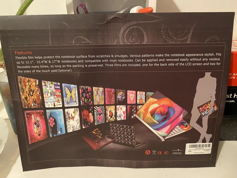 Flexible film helps protect the notebook surface from scratches & smudges. Various patterns make the notebook appearance stylish. Fits up to 12.1", 15.4"W & 17"W notebooks and compatible with most notebooks. Can be applied and removed easily without any residue. Reusable many times, so long as the packing is preserved. Three films are included, one for the back side of the LCD screen and two for the sides of the touch pad(Optional).