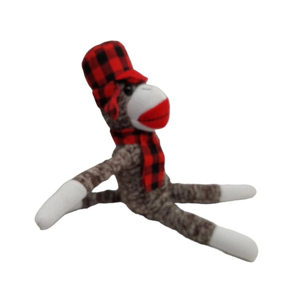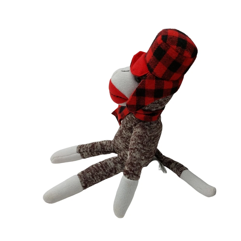 HomeGalerie Jack Monkey Plush Holiday Stuffed Animal Toy Christmas Plaid Hat Scarf