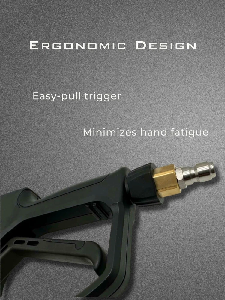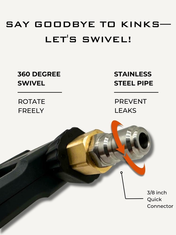 Gallant Pa Short Swivel Pressure Washer Gun, 5000 PSI, 8 GPM, 1/4" Quick Connector Outlet, 3/8" Quick Connector and M22-14mm Inlet, for Gas & Electric Pressure Washers, Foam Cannon Car Wash Product Details Material: Stainless Steel, Brass Brand: LYNXPA Item dimensions L x W x H: 11 x 6.5 x 1.9 inches Exterior Finish: Stainless Steel or Brass Inlet Connection Type: National Pipe Tapered Outlet Connection Type: Quick Connector Maximum Operating Pressure: 5E+3 Pound per Square Inch Number of Ports: 1 Outlet Connection Size: 0.38 Inches Manufacturer: LYNXPA Material: Stainless Steel, Brass Brand: LYNXPA Item dimensions L x W x H: 11 x 6.5 x 1.9 inches Exterior Finish: Stainless Steel or Brass Inlet Connection Type: National Pipe Tapered Outlet Connection Type: Quick Connector Maximum Operating Pressure: 5E+3 Pound per Square Inch Number of Ports: 1 Outlet Connection Size: 0.38 Inches Manufacturer: LYNXPA UPC: 749565650502 Part Number: LYN-5000-Swivel-PWG-S Item Weight: 2.05 pounds Product Dimensions: 11 x 6.5 x 1.9 inches Country of Origin: China Item model number: LYN-5000-Swivel-PWG-S Color: Black Power Source: Electric & Gas Flow Rate: 8 Gallons Per Minute Batteries Included?: No Batteries Required?: No Date First Available: February 28, 2024 Superior Performance: With a maximum working pressure of 5000 PSI at 8 GPM, Gallant Pa delivers exceptional cleaning results for professionals and homeowners. Built to Last: Crafted from premium stainless steel and brass, Gallant Pa ensures durability and crack resistance. Its shockproof reinforced plastic ribbing provides robust protection. A quality-made tool can change the game. 360 Swivel, Effortless Maneuverability: Effortlessly maneuver with a 360-degree swivel design and a 3/8" brass connector inlet, preventing hose kinks and offering precise reach for thorough cleaning. Quick Setup, Ultimate Compatibility: Effortlessly attach Gallant Pa to foam cannons, nozzle tips, etc. with a 1/4" quick connector outlet. Compatible with both gas and electric pressure washers, Gallant PA is your go-to solution for all cleaning tasks. We've got you covered with an adapter to M22-14mm fitting. What's Included: One 5000 PSI pressure washer gun, one M22-14mm adapter. Upgrade your cleaning routine today with Gallant Pa!