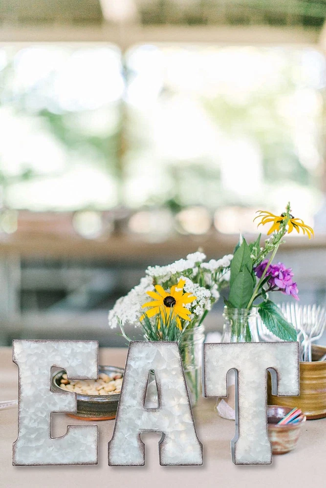 Galvanized EAT Sign Rustic Metal Letters Free Standing Decorative Sign Wall D...