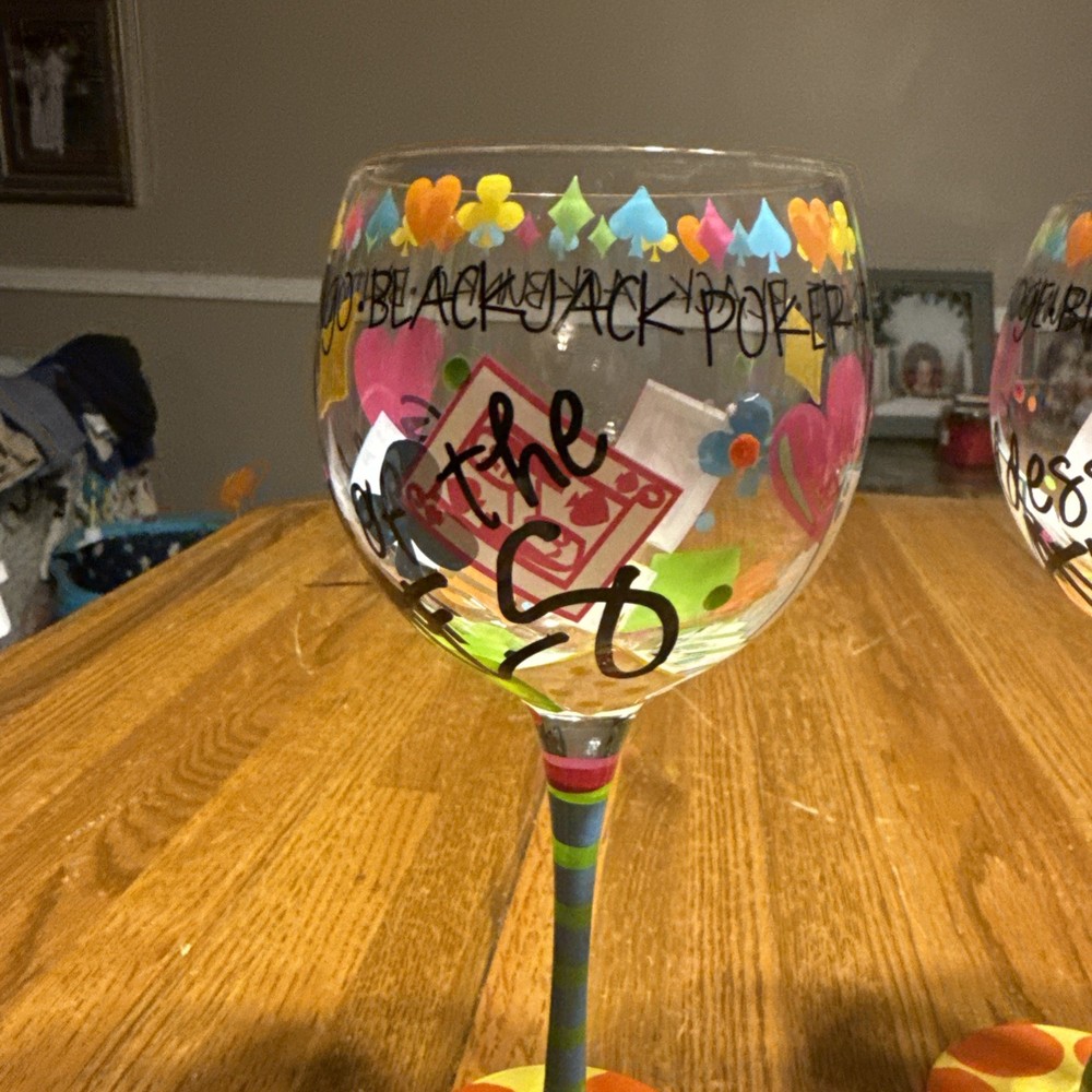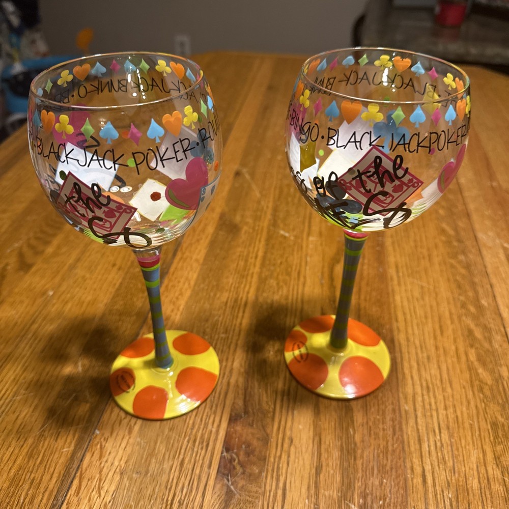 Novelty Women’s Gambling Wine Glasses Hand Painted Doozie Goddess Of Games