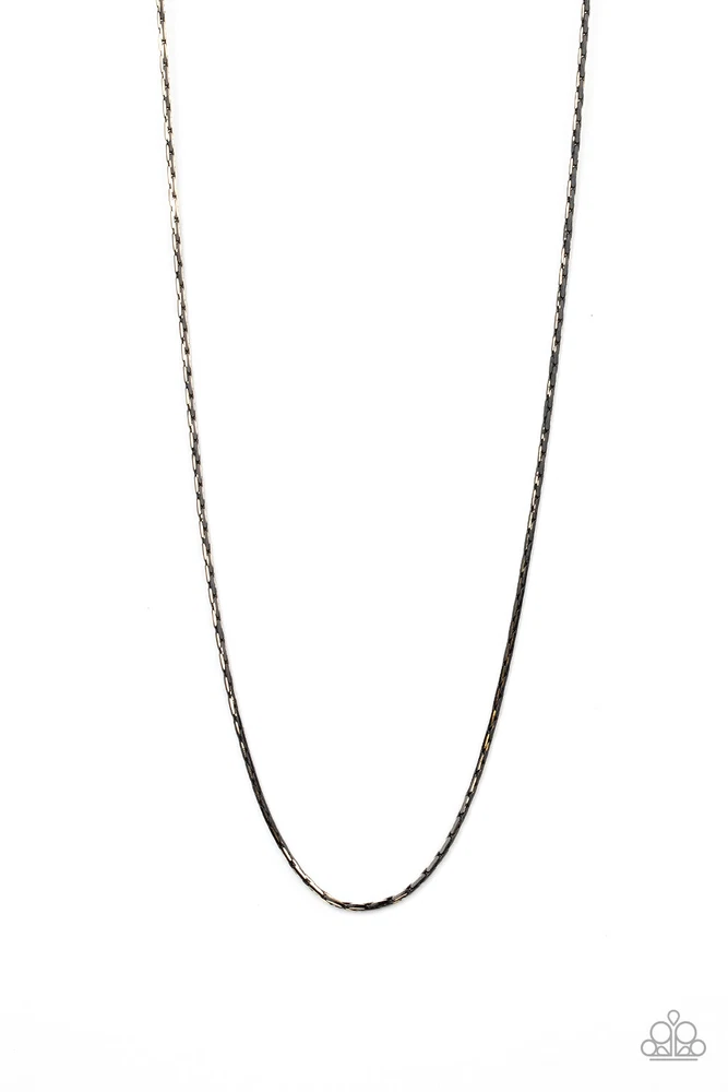 Game Day - Gold - Paparazzi Accessories Men's Necklace Item ID Number: 1970 Color Gold Description A dainty row of black and gold slim box chain drapes across the chest for a minimalist-inspired look. Features an adjustable clasp closure. Sold as one individual necklace. Additional Images