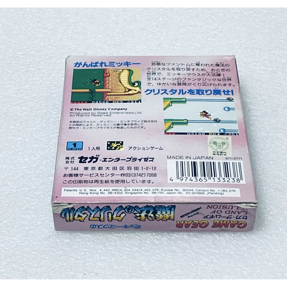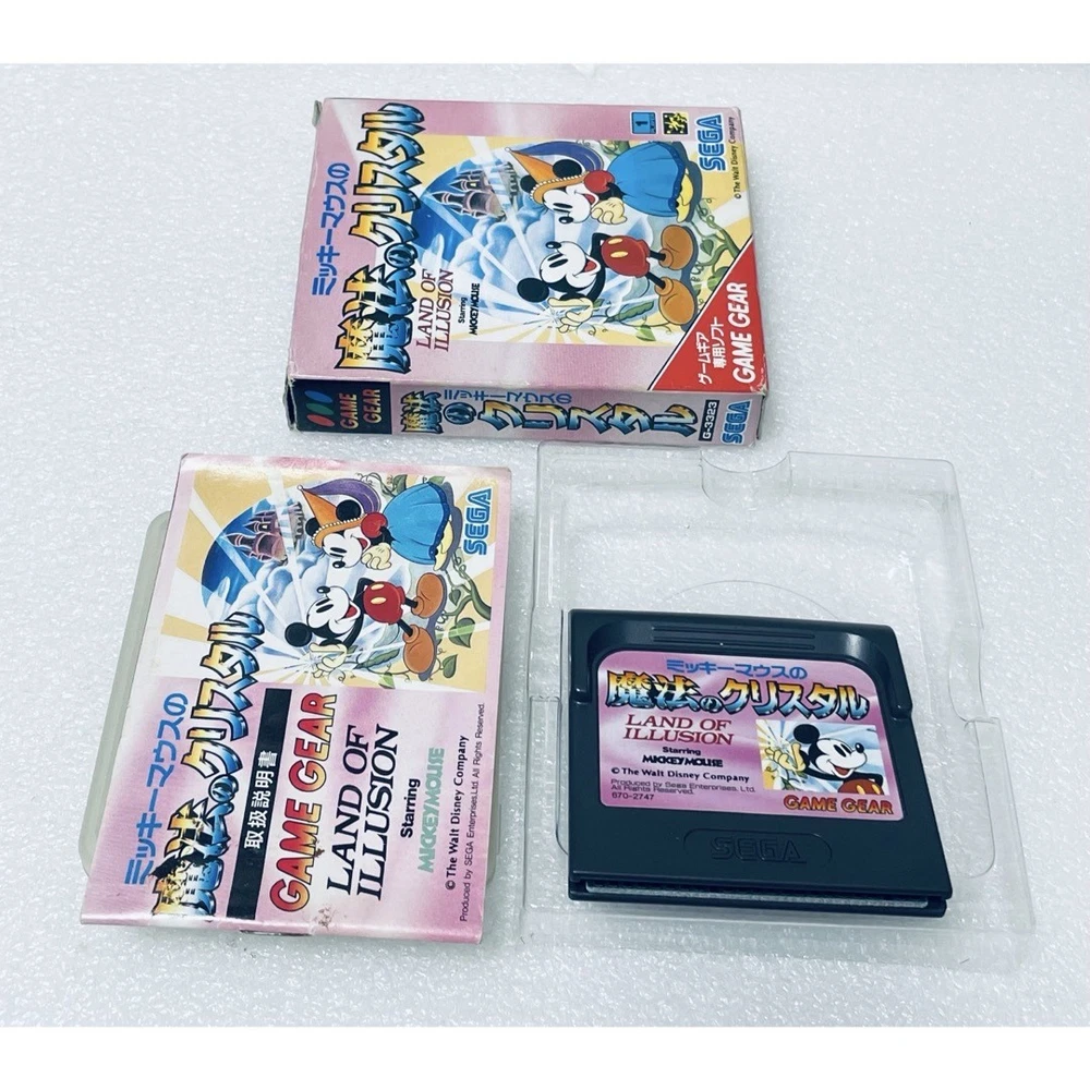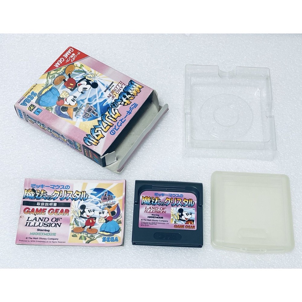 Customs and duties: For buyers in the United States: Import duties and taxes are included in the item price or shipping cost. Items shipped to the U.S. are sent under the Delivered Duty Paid (DDP) method, which means all import-related charges are prepaid. You don?t need to pay any additional fees when your order arrives. (Only if the item price is less than $2500. If it is more than $2500, the buyer is responsible for customs duties and all import related charges.) For buyers outside the United States: Import duties, taxes, and charges are not included in the item price or shipping cost. These charges are the buyer?s responsibility. Please check with your country?s customs office to determine what these additional costs will be before bidding or buying. Item Title Description GAME GEAR SOFT LAND OF ILLUSION STARRING MICKEY MOUSE Mickey Mouse Magic Crystal Outer Box Inner Box with instructions. Confirmed operation. Payment Managed Payment Shipping Free Shipping. International Buyers - Please Note: Import duties, taxes, and charges are not included in the item price or shipping cost. These charges are the buyer's responsibility. Please check with your country's customs office to determine what these additional costs will be prior to bidding or buying.