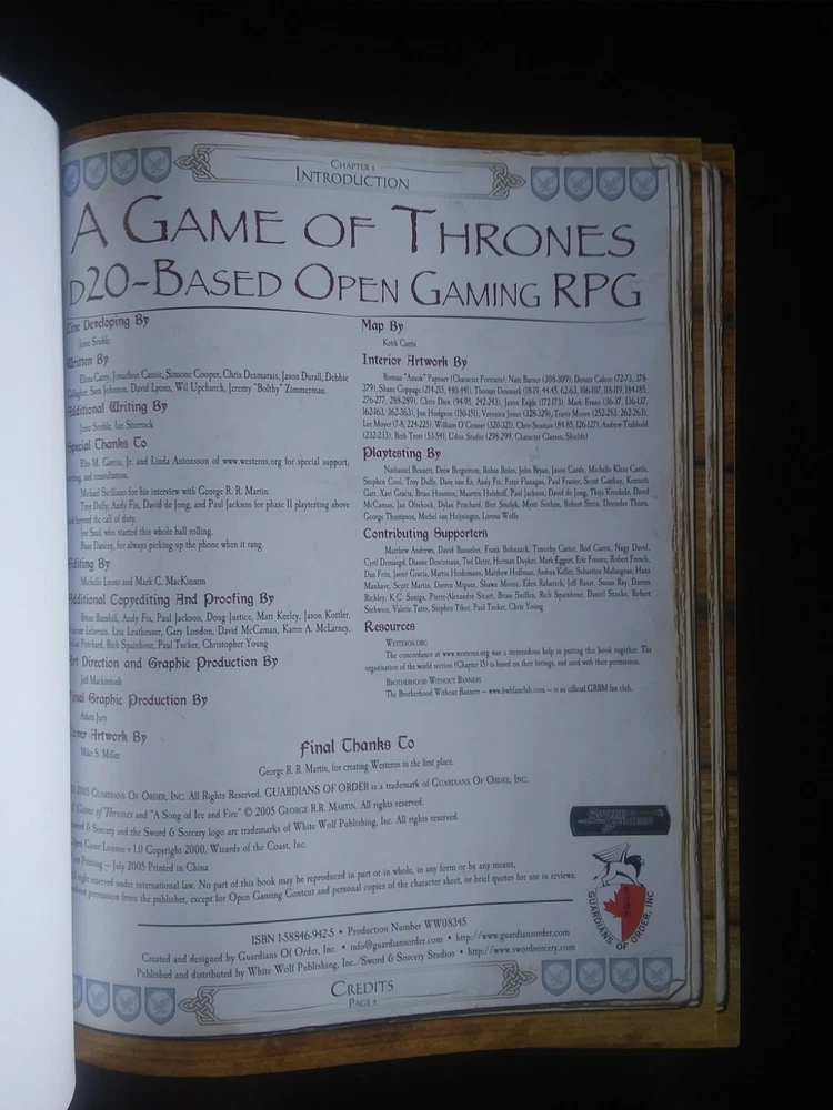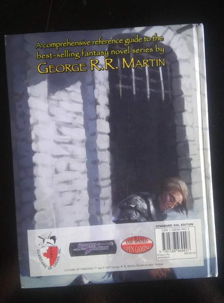 Book Series:Sword and Sorcery D20 Ser.Format:Hardcover / PosterItem Height:1.4 inIllustrator:YesItem Length:11.3 inPublication Year:2005Item Width:8.7 inISBN-10:1588469425Intended Audience:TradeBook Title:Game of ThronesPublisher:White Wolf Publishing, IncorporatedGenre:Games & ActivitiesTopic:Role Playing & FantasyNumber of Pages:495 PagesLanguage:EnglishItem Weight:71.7 OzTitleLeading:Agtin13:9781588469427brand:White Wolf Publishing, IncorporatedISBN-13:9781588469427Author:White Wolf Publishing Inc