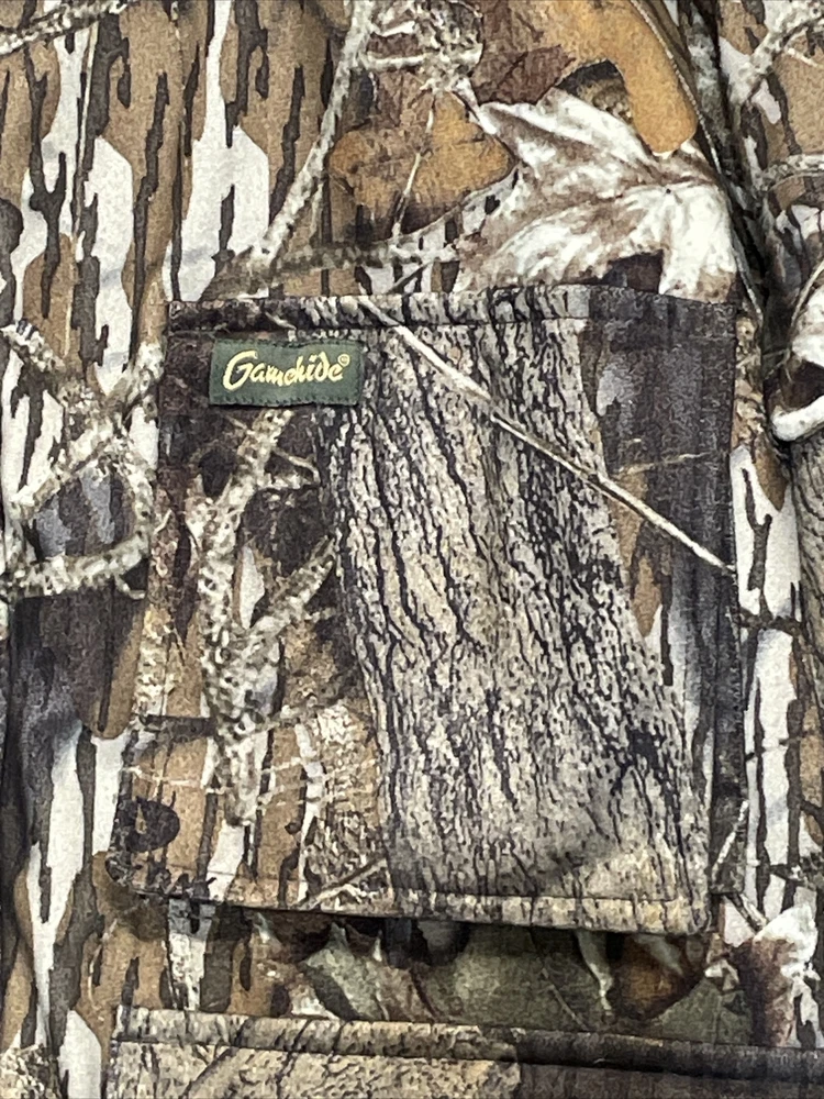 Gamehide Men's Camo Puffer Coat and Liner 2-1 Size L Hunting Jacket Outdoors Item listed in Good used Condition please see attached photos for more details Measurements are as follows 25” chest 29” length 29” sleeve length from shoulder Will ship UPS within 24 hours safely and efficiently
