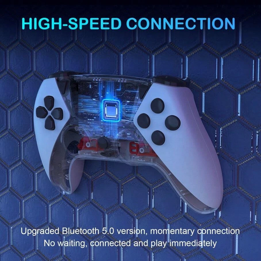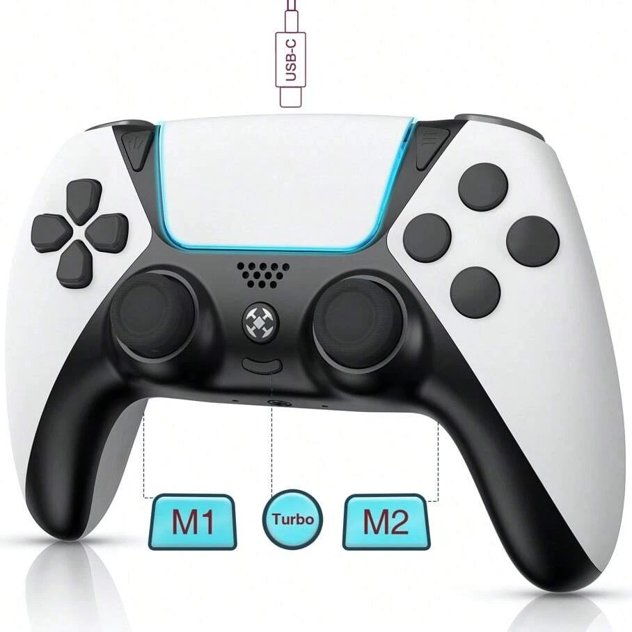 Multi-Platform Compatibility – unique controller for playstation 4 is compatible with your PS4/PS4 Pro/PS4 Slim/PS5 console (only support PS4 games on PS5 console). Our scuf PS4 controller is also perfect for the Steam game platform on PC (Windows 7/8/10). And you can custom set this ps4 turbo controller on DS4windows. It supports Android phones and iPhone too. New Model Design - newest controller for PS4 is the exact size and shape of the PS5 controller. This ps4 controller is made of imported materials that is anti-sweat, non-slip and skin-friendly. It is with full features as original pa4 controller, such as Dual Vibration, Touch Pad, Six-Axis Sensor, audio Jack, Share. Personalized Configs – The unique turbo function of this playstation 4 controller can achieve one-click bursts. You can further develop your competitive skills and win faster than ever with this gamepad control PS4. There are two paddles on the back of the PS4 pro controller really helps in competitive play. It can be mapped to 12 different functions (/○/□/△/L1/L2/L3/R1/R2/R3/SHARE/OPTIONS keys). Upgrade Analog Pinpoint Accuracy - The ergonomic design of our ps4 controller wireless is specially designed to ensure perfect control and execution. Its analog sticks and trigger buttons provide pinpoint accuracy and comfort, with enhanced sensitivity that will provide precise shot in the game as FPS. If you are a gamer and looking for a precision controller, this is it! Imported Powerful Clip with Momentary Connection – ps4 remote includes a Japan imported powerful clip using stable wireless Bluetooth 5.0 version signal transmission up to 10 meters without delay. At the same time, we upgraded the battery to 1200 mAh that you could play almost 10 hours, and with Type-C charging port for 2h convenient fast charging. What you get – 1 x wireless ps4 controller, 1 x 6ft type c cable, 1 x instruction manual