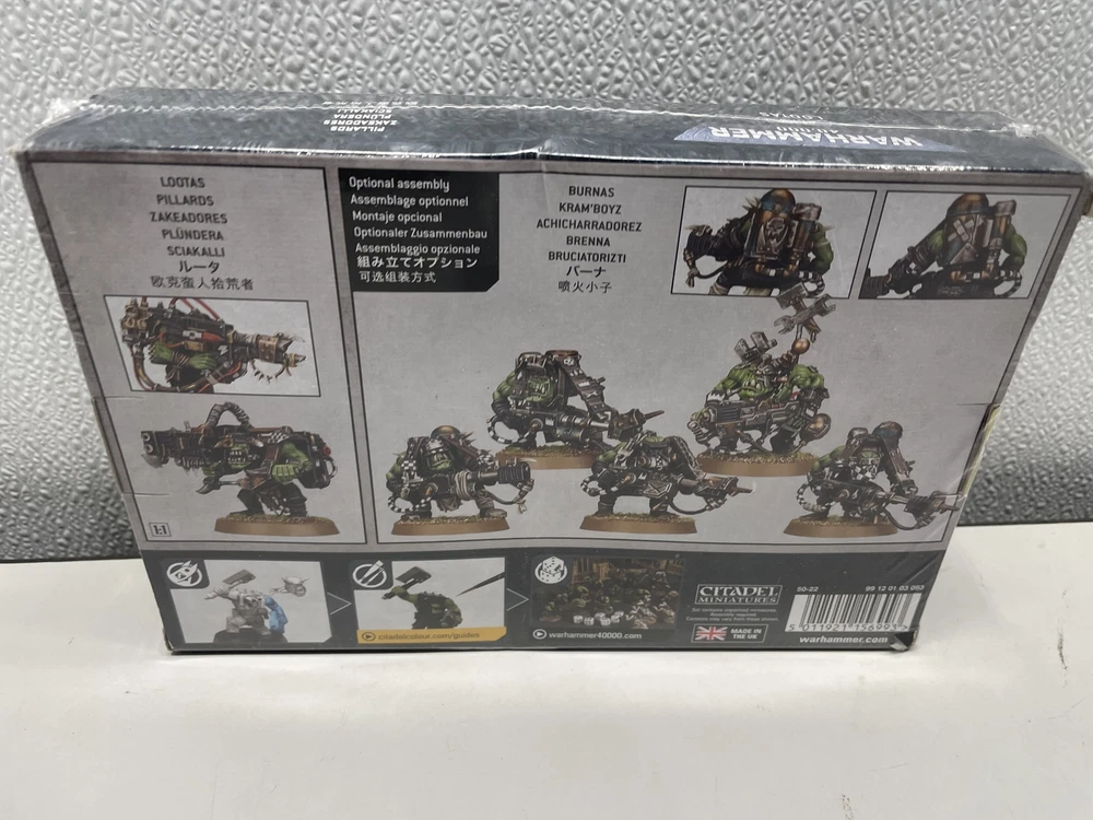 ebay template Games Workshop Warhammer 40K ORK LOOTAS Item Specifics: Format: Miniatures Color: Various Title: Games Workshop Warhammer 40K ORK LOOTAS Condition: New-- Sealed in box; Light Dirt and dust from warehouse storage; Light Wear on sides of box from warehouse storage; see photos Features: Citadel Miniatures Unpainted Cargo Largo is not sponsored by or affiliated with the brand associated with the product being sold. Redeemable Codes: *We do not guarantee the validity of any redeemable codes included in this item* This item cannot be shipped out of the United States! Cargo Largo is not sponsored by or affiliated with the brand associated with the product being sold. Contact Seller If you have any questions, please use the “Contact Seller” link in the upper right section of the listing. Our business hours are 8:00 AM - 3:30 PM Monday-Friday (Central Time). Sales completed and emails received after normal business hours may be handled the next business day. Shipping Policy We ONLY ship within the lower 48 United States. We ONLY ship to the address selected by the customer at checkout. Buyers MAY NOT arrange their own shipping. ALL orders with total value of $250 or more WILL require a delivery signature. For this item, we DO NOT offer combined shipping with other listings. Location We offer local pickup for all our eBay auction items. To request local pickup for items you have won, please send us a message asking for “pick up” and we will send you an eBay invoice with your total. All local pickup orders MUST be paid within 4 DAYS after the listing ended per eBay policy. The payment total will include Missouri sales tax AND a $4 handling fee per item. Non-Missouri residents will need to pay IN PERSON (credit/debit cards only) within 4 days after the listing ended. Buy It Now items are NOT eligible for local pickup. Paid items must be picked up within 10 DAYS after the end of the listing. If not, your order will be cancelled and refunded. Social distancing policies WILL be enforced during pickups. Local Pickup Location 7460 Stadium Drive Kansas City, MO 64129 Pickup Hours SUNDAY MONDAY TUESDAY WEDNESDAY THURSDAY FRIDAY SATURDAY CLOSED 11am-6pm 7:30am-4pm CLOSED 7:30am-4pm 7:30am-6pm CLOSED Return Policy We are not an authorized dealer of this product and any warranty included with the product may not be honored by the manufacturer. If you believe that the item purchased from us does not match the item description, or if your item was damaged during transit, please contact us to discuss return and refund options. In order to initiate the refund process, buyer must contact us within 30 Days of receipt of item. All returns will require a return authorization. Please note that we will only pay return shipping if our listing does not accurately reflect the specifications or condition of the item received. If you wish to return an item for any other reason, we will accept a return on MOST items, provided that the item is returned to us in the same condition and within 30 Days. This applies to both the item and retail packaging. Buyer will be responsible for both original and return shipping charges Seller will initiate this transaction and refund the buyer once the item has been received AND agreed to the mutual cancellation. We DO NOT accept any returns on swimsuits, undergarments, stockings, lingerie, or any item marked AS IS for any reason other than a grievous error in the listing. Please bid accordingly on all items listed AS IS. Payments Cargo Largo requires payment within four (4) days. (Please note that this is real-time, beginning when the auction ends.) If payment has still not been received by the fourth (4th) day after the end of the auction, Cargo Largo will relist the item. Most states require the collection of SALES TAX on online sales by remote sellers. We will abide by all local, state and federal tax codes and buyer should check their state and locality for tax liability. Residents of Missouri and all buyers who pick their item(s) up locally are required to pay Missouri sales tax on all items. Sell Smarter with Kyozou. Inventory and Ecommerce Management