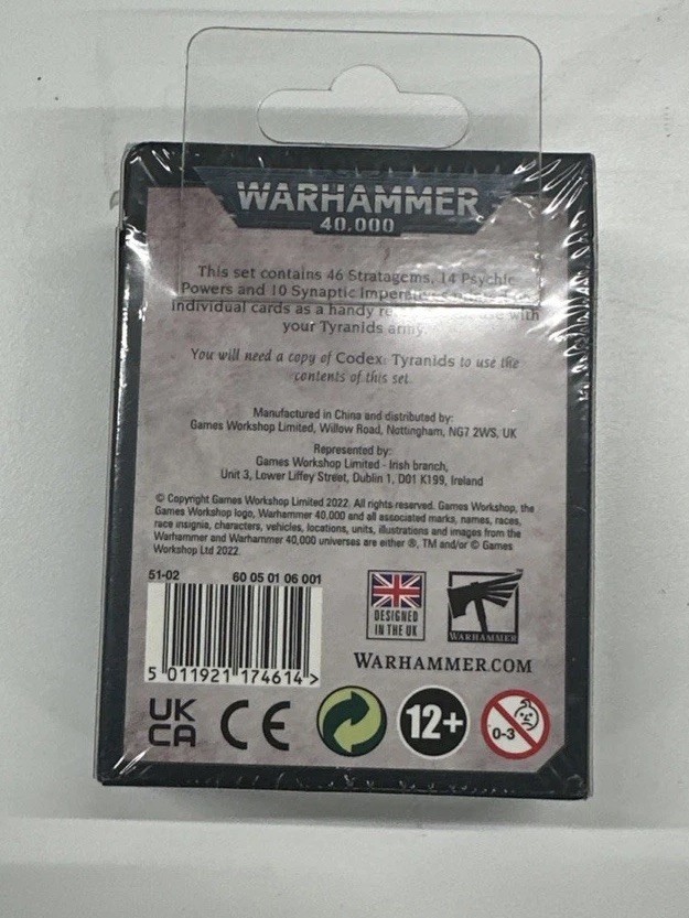 The Games Workshop Warhammer 40K Tyranids Datacards - 60050106001 are specialized game components for Warhammer 40K enthusiasts who command the Tyranids army. These datacards provide players with quick reference information during gameplay, enhancing the strategic experience of the Warhammer 40K game. With a focus on the Tyranids army and featuring bulk lots of datacards, this product is ideal for players looking to expand their collection and enhance their gaming experience with this specific army in the Warhammer 40K universe.