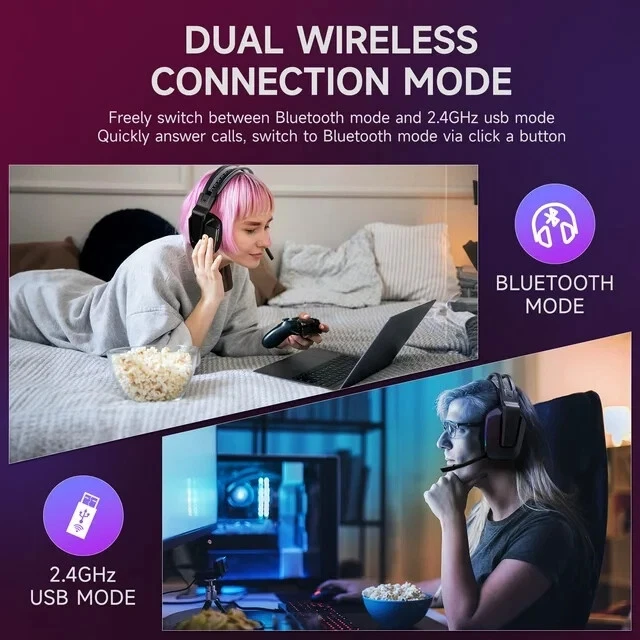 Gaming Headset, Wireless Bluetooth Gaming Headphones, Black, All devices
