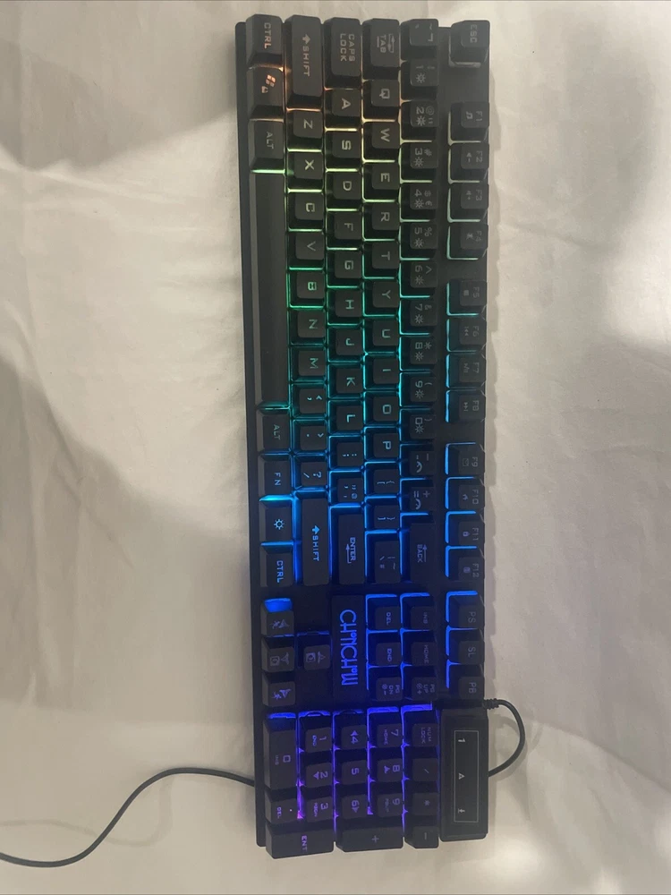 Enhance your gaming experience with the Chonchow Model X981 Gaming Keyboard in sleek black. This QWERTY keyboard boasts an illuminated display and enhanced function keys for a seamless gaming experience. The keyboard is wired with a USB connexion for easy plug and play use. The Chonchow X981 keyboard is 17 inches long and 5 inches wide, with English as the keyboard language. This keyboard is perfect for avid gamers who are looking for a keyboard that will elevate their gaming experience. The keyboard is manufactured in China and is perfect for use with computers, tablets, and networking devices.