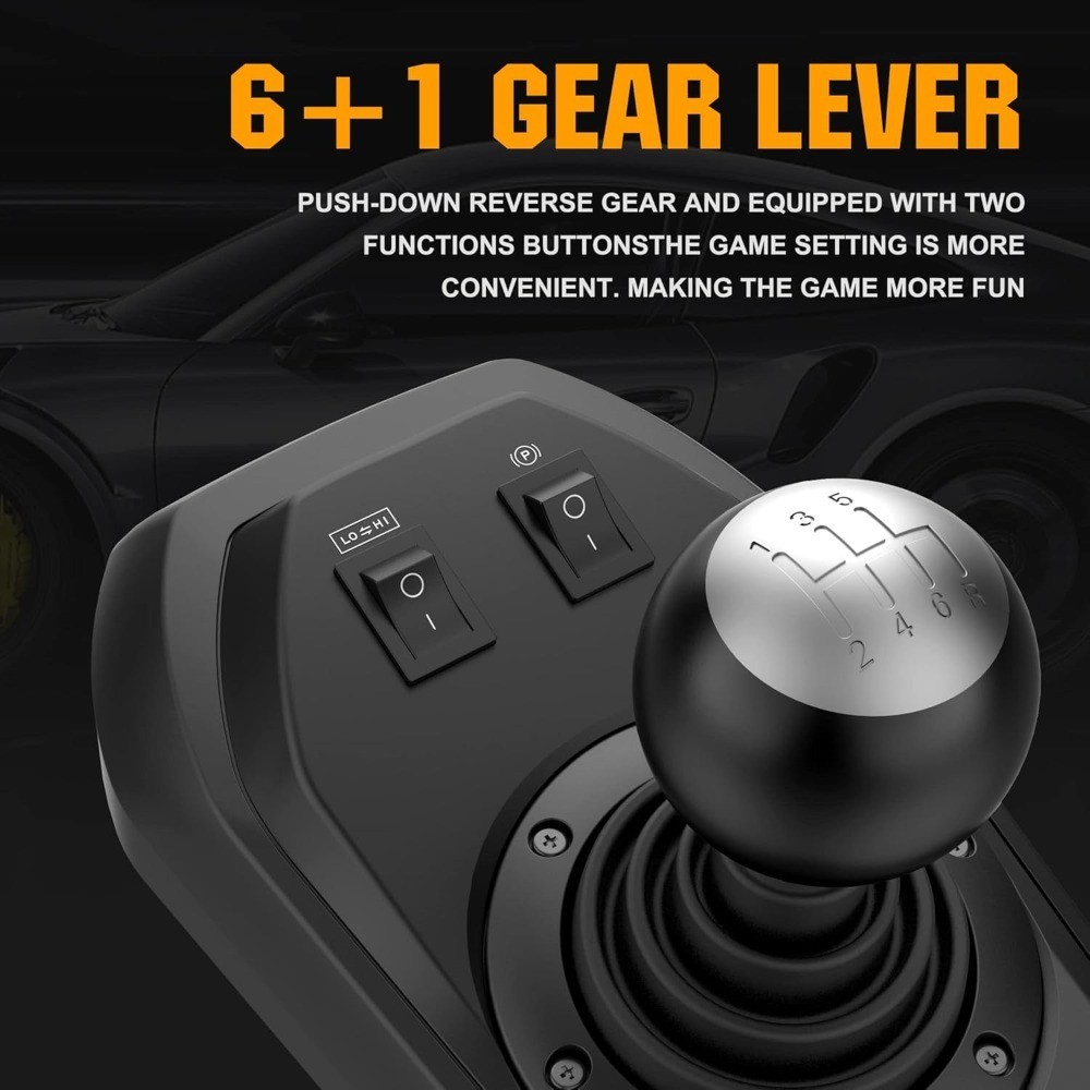 【Wide Compatibility】: Compatible with One, Series S/X/ PC/ PS3/ PS4/ Switch. (Note: After the original One, Series S/X, PS4, PS3. Controller is turned off, use a USB data cable to connect the PS4/PS3 original controller to the USB port of the steering wheel.) 【Visual APP Programming】: App Store or Google Play also has " Wheel" to download and install, which supports personalized steering wheel settings. The APP can view various parameters of the racing steering wheel, such as high and low sensitivity settings. It can also help you save multiple game key settings so that you do not need to reset them, which is convenient and worry-free. 【One-click Switching Mode】: The rotation angle of the steering wheel is adjustable from 270 degrees to 900 degrees, and the smart -core provides two modes of X input and D input on the PC. If you want to use shifter, please switch the steering wheel to D-input mode. Press and hold the "MODE" key until the red light flashes. Suitable for different racing games. 【Hall effect pedals & manual shifting】With 3-pedal pedal (clutch, brake, accelerator) and shift lever. The steering wheel and gear lever can be attached to the table with suction cups and C-clamps. The accelerator braking threshold is automatically adjusted according to the pedaling force; the shifter can operate the vehicle to switch between high and low positions. 【More Features】: Built-in vibration motors bring a more realistic racing experience. The steering wheel has a headset and microphone function, and the headset and microphone function can be used for voice interaction on PS4 consoles. The product has a 12-month , please rest assured to place an order.