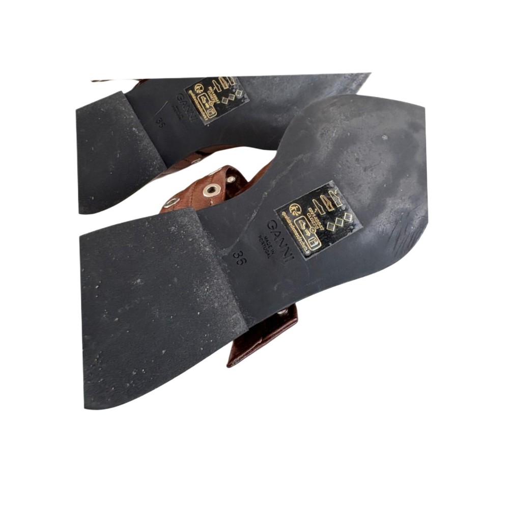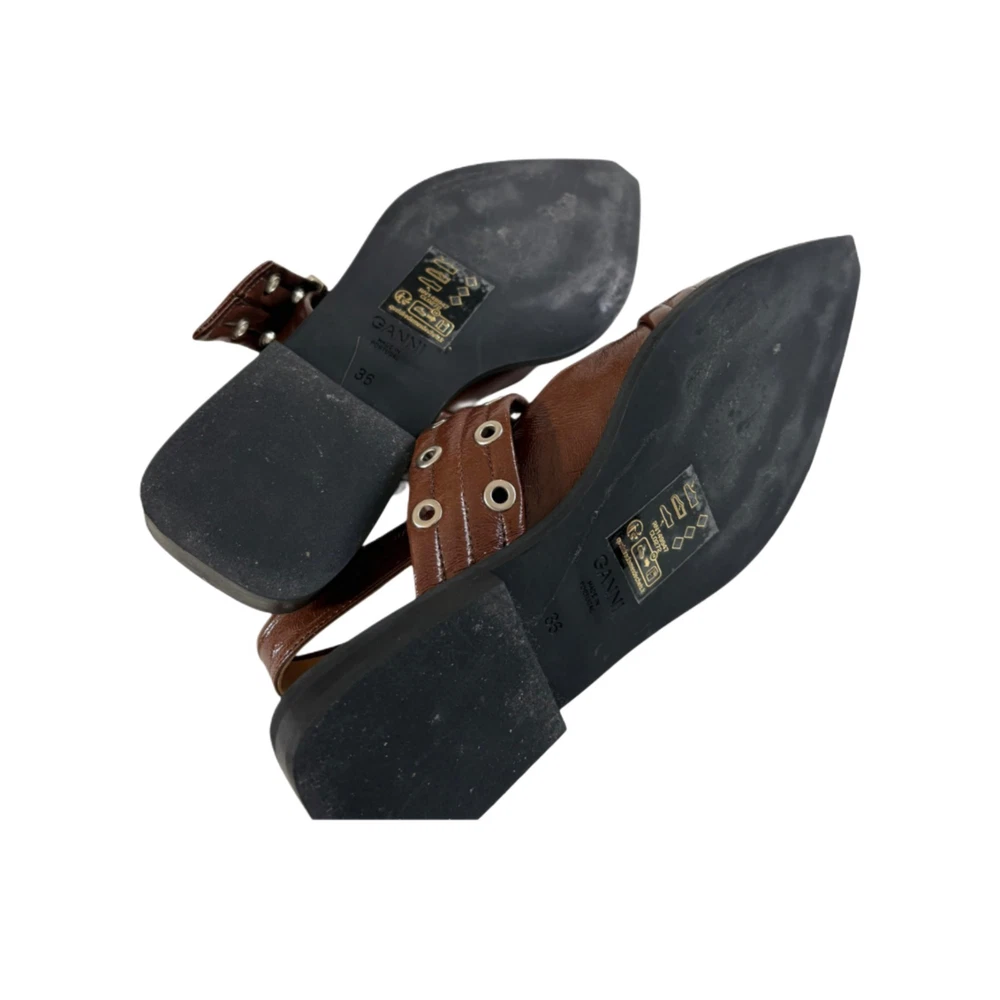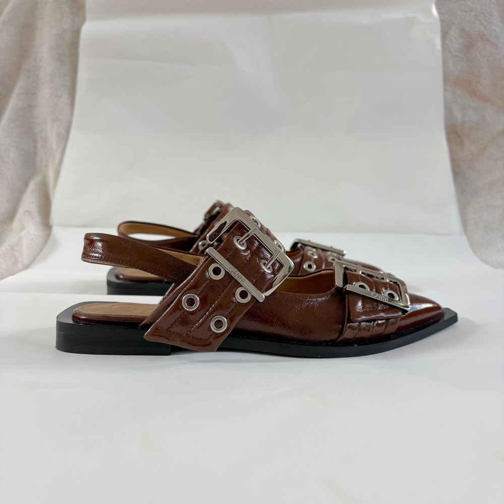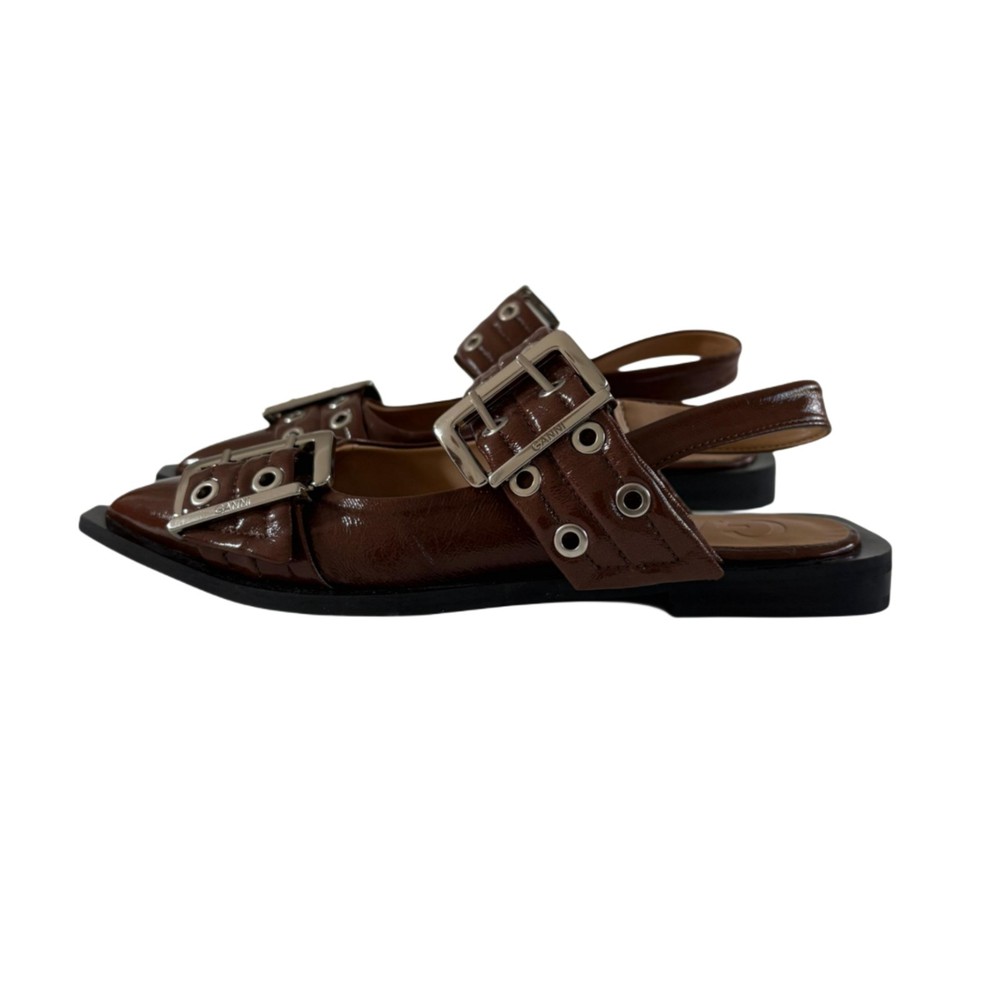 Ganni Brown With Silver Buckle Ballerina Leather Pointed Shoes, Size 36 Attributes Material: Leather Color: Brown Size: 36 Condition: Very Good