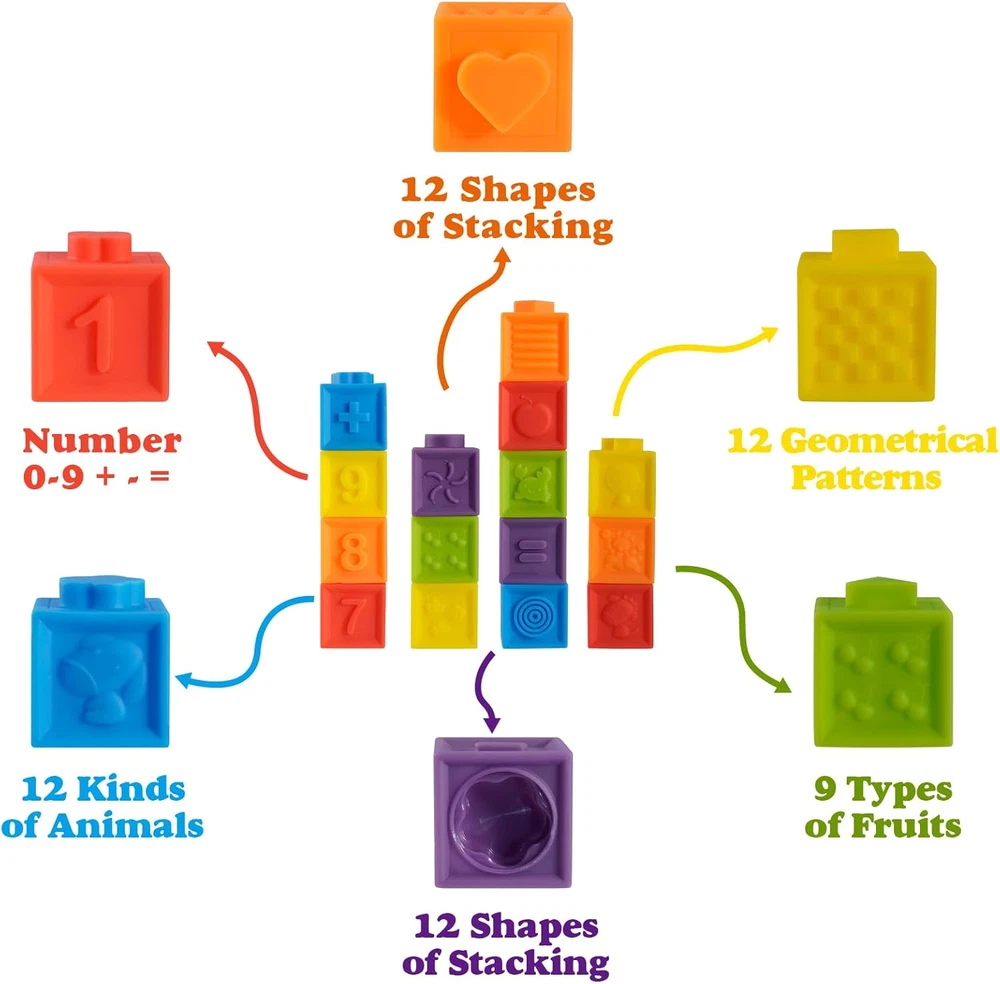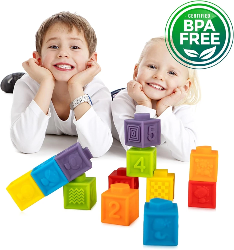 Soft Stacking Block : Baby Montessori Toys include 12 pcs mini soft and squeezable blocks. Each block has fun color, number, animal and shape. suitable for 6 month up baby Easter egg fillers for babys,toddlers Easter basket stuffers for toddlers Baby Gifts Stocking Stuffers : Soft stacking blocks and easy to squeeze for babies and toddlers to play, making a squeak sound. These baby building blocks are soft, durable and easy to be picked up and stacked together by babys hand. Stocking Stuffers Montessori Toys for Infant Toys For Toddlers Gifts :This colorful soft stacking blocks set is a great multi-purpose toy for babies. It is soft, chewable and perfect for the baby who is aged 6 months and just gets their first teeth. It can also be used as a bath toy, can float on the water and squeeze to spray water. Stocking Stuffers Building blocks for babies Gifts 6-12 months : Mini Montessori Toys come in a cute packing, stocking stuffers for babys, boys and girls, soft block for babies 6-12 months.Easter egg fillers for babys,,toddlers Easter basket stuffers for toddlers No bad odor or chemical smell : If you not satisfied with your purchase, just let us know so we can give you a refund or replacement. Product Description 12PCS MOLD FREE BABY BATH TOY SET If you're looking for a bath toy that won't get in water, mold, and endanger your child's health, then this is what you're looking for. Recognizing the potential dangers of squirting bath toys, developed a mold-free bath toy that combines the advantages of non-absorbent, non-toxic, baby-friendly, and more Our bath toys make great gifts for babies and children, party favors, and birthday decorations. Use your imagination or let your kids create their own world with our fun and colorful bath toys. No Hole Design Ganowo bath toys are designed with materials and construction mold free, ensuring your child's safety during play Easy to Clean Say goodbye to the hassle of cleaning and drying toys after every bath. Mold free bath toys are a breeze to maintain, giving you more quality time with your little one Variety and Fun Ganowo mold free bath toys come in a range of exciting shapes and colors, providing endless entertainment and promoting sensory development during bath time Will the mold free bath toys safe? Made of non-toxic and odorless sanitary resin PVC, which can directly contact with the baby's skin. Why a hole in the bottom and seal with glue? The production process caused a hole in the bottom, and the epoxy glue solved this problem perfectly. What are the benefits of toys with no holes? Safety - Toys without holes eliminate the risk of small parts becoming detached and posing a choking hazard, making them safer for children of all ages. Are these suitable for infants 6-12 months old? Yes, these bath toys are suitable for infants 6-12 months old as well as toddlers aged 1-6 years old. Do these toys promote hand-eye coordination? Yes, these bath toys can help promote hand-eye coordination in young children as they grasp, manipulate and interact with the different animal figures during play. The bright colors and cute shapes also stimulate visual senses.