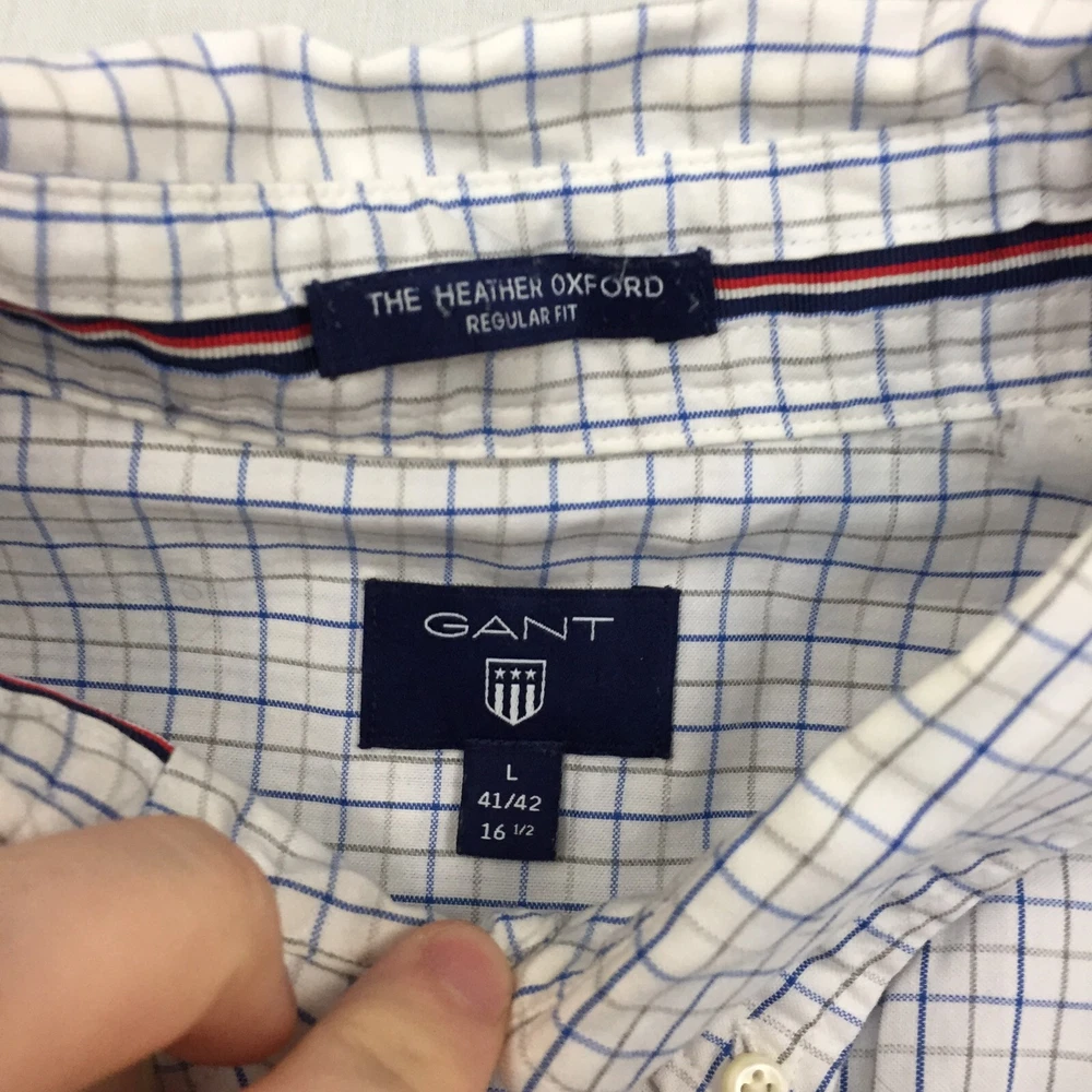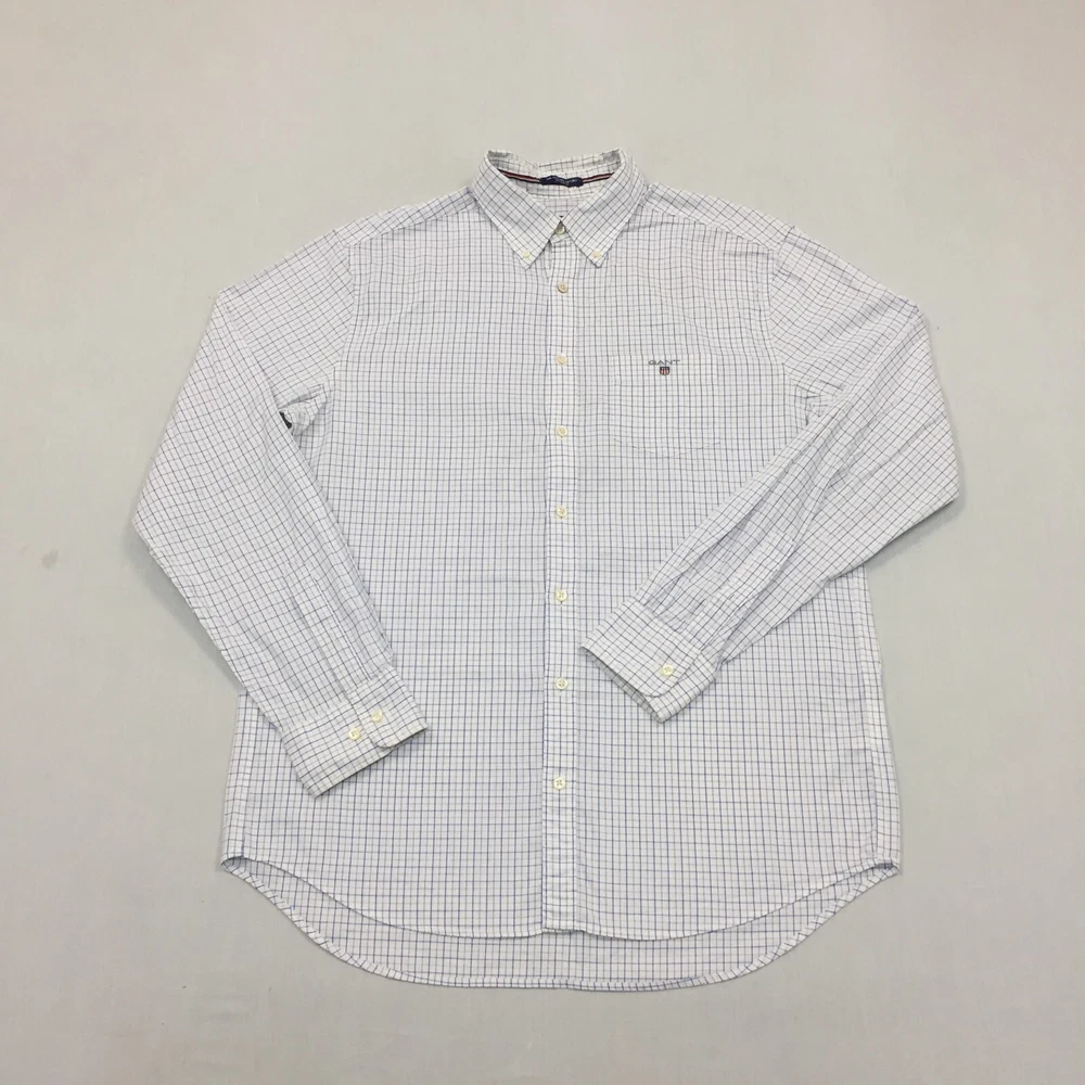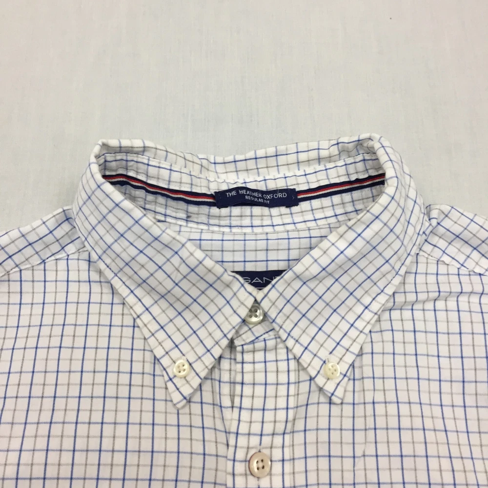 Personalise: No Sleeve Length: Long Sleeve Accents: Button Seller Notes: “Good used condition, check below for full description & photos.” Type: Button-Up Neckline: Collared Handmade: No Collar Style: Button-Down Vintage: No Material: Cotton Blend Country/Region of Manufacture: Unknown Colour: Multicoloured Occasion: Business, Casual, Formal Pattern: Check Features: All Seasons Fit: Regular Closure: Button Fabric Type: Canvas Department: Men Size: M Garment Care: Machine Washable Size Type: Regular Brand: GANT Theme: Classic Season: Autumn, Spring, Summer, Winter