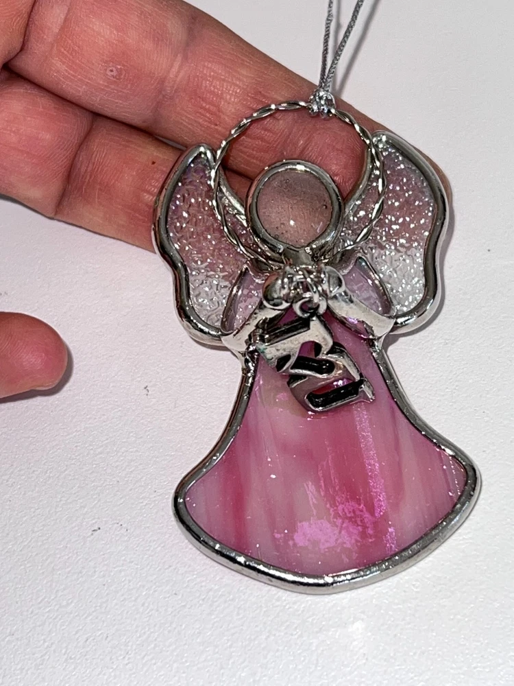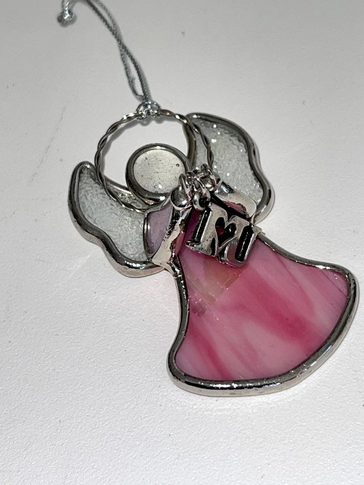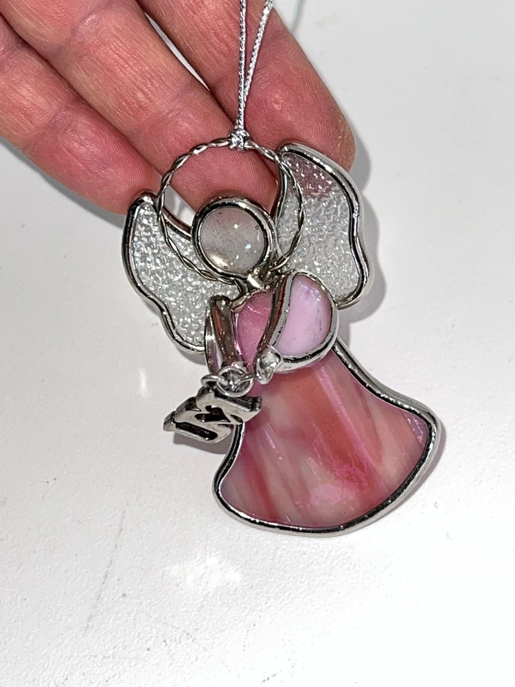 Ganz?? Stained Clear Glass Angel Ornament Pink with I ❤️ U Charm 3" L