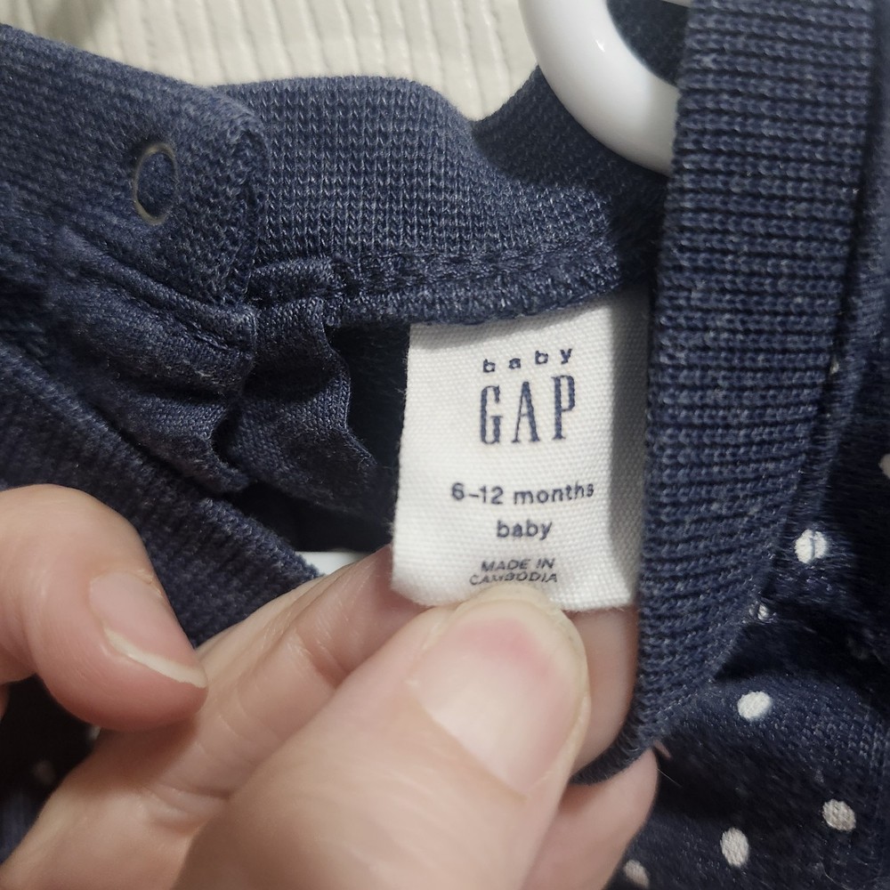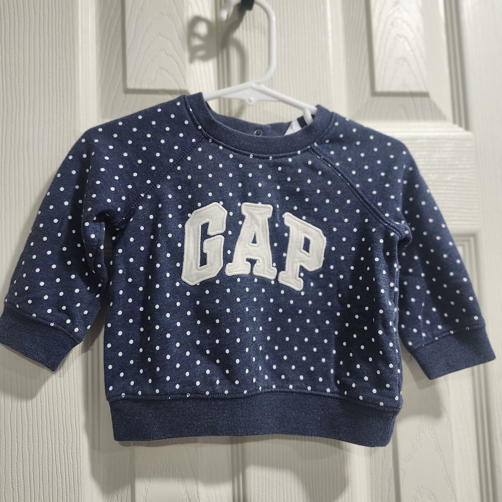 The Gap 6-12 Month Blue Polka Dot Sweatshirt with Gap Logo is a stylish and comfortable outfit for baby boys. Made from 100% cotton, this long-sleeve sweatshirt features a cute polka dot pattern in blue color. The snaps closure makes dressing easy and convenient. Perfect for casual occasions, this one-piece outfit is machine washable and suitable for all seasons. The Gap brand ensures quality and durability, making it a great addition to your little one's wardrobe.