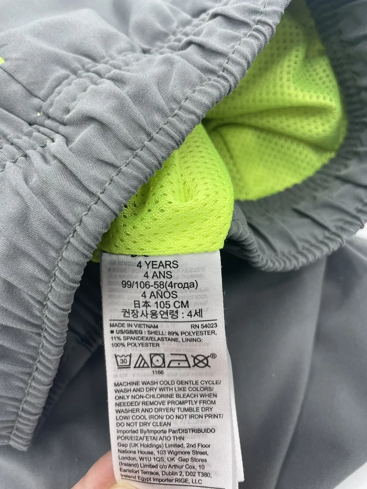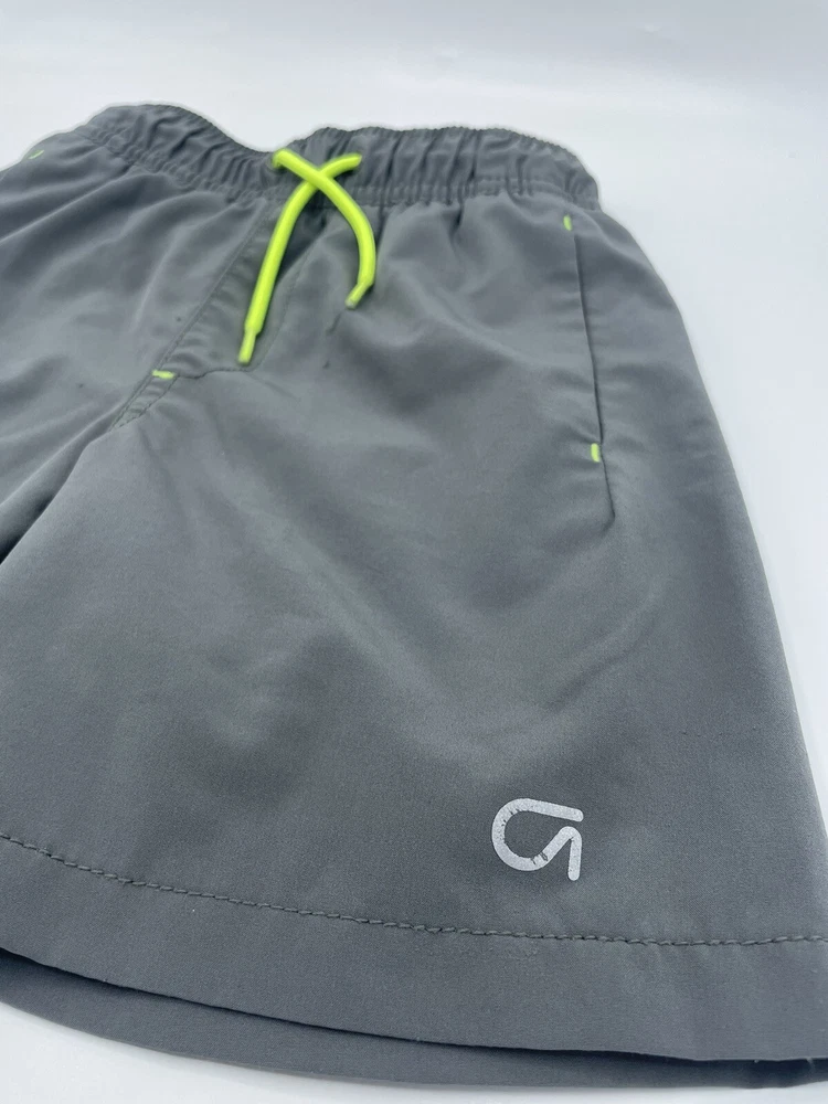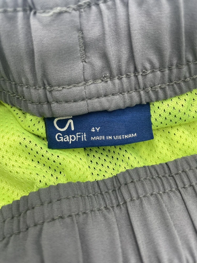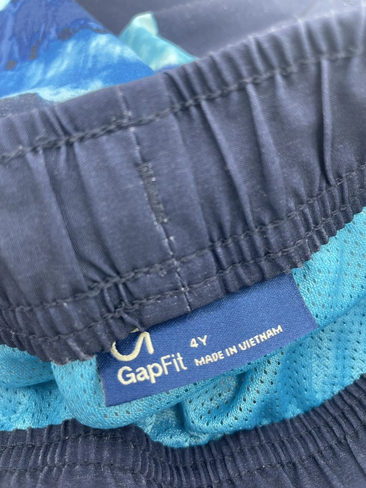 These Gap Fit boys' shorts are perfect for any active occasion. The drawstring closure and flat front provide both comfort and style, while the polyester spandex elastane blended fabric ensures flexibility and durability. The shorts come in size 4 and feature a solid pattern in slate gray and blue, making them a versatile addition to any little boy's wardrobe. The lined shorts are machine washable and suitable for a variety of performance activities such as cycling, cross-training, and running. They are also great for casual wear and can be worn to the beach or school. With these Gap Fit shorts, your little boy will stay comfortable and stylish all day long. Condition is gently preowned, very nice condition. There is some fading on the blue shorts, especially on the backside. Please refer to photos for condition description.