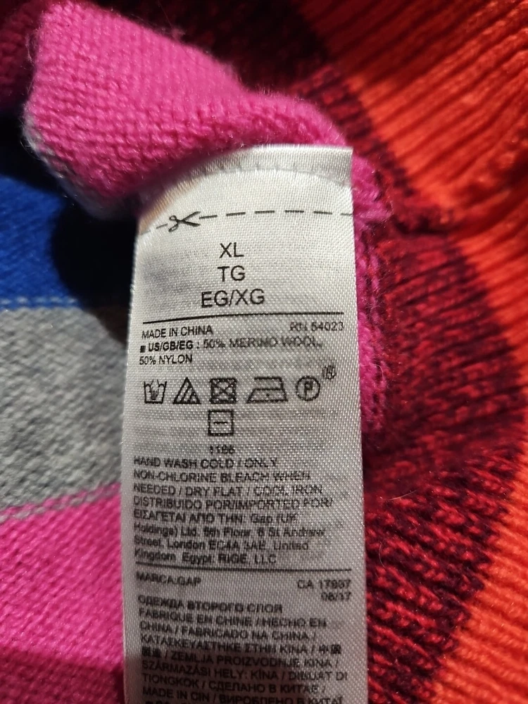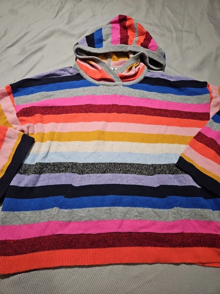 Gap Hoodie Womens XL Multicolor Jumper Rainbow Stripe Merino Wool Blend Oversize Pre-owned In excellent condition Please measure your garments at home to ensure sizing matches what you need. Measurements in photographs above This item was thoroughly checked for condition of this item. Each flaw that we find will be shown in the photos and described in the condition description and here as well. For any reason if we miss something on an item we offer 30 day moneyback guarantee refund. SHIPPING RULES: We Ship Monday through Friday If purchased before 1pm possibly will be shipped same day