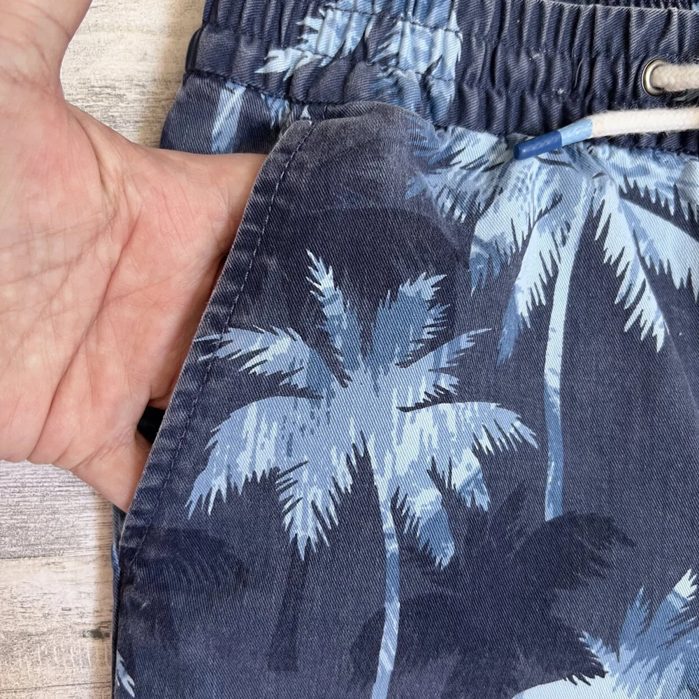 Gap Kids Boys Easy Pull-On Shorts with Washwell. Blue with palm tree print. Elastic waistband with drawstring. Side slant pockets. Back patch pockets. Size M/8 Very good used condition. Minor signs of wear. Waist 11" Inseam 7" Smoke free home. Pet friendly.