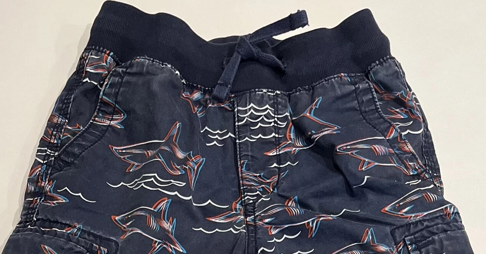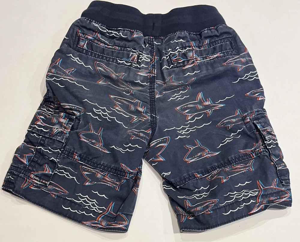 Gap Kids Boys Shark Cargo Shorts Size 5 • Easy Care • Elastic Waist • Pockets • 100% cotton