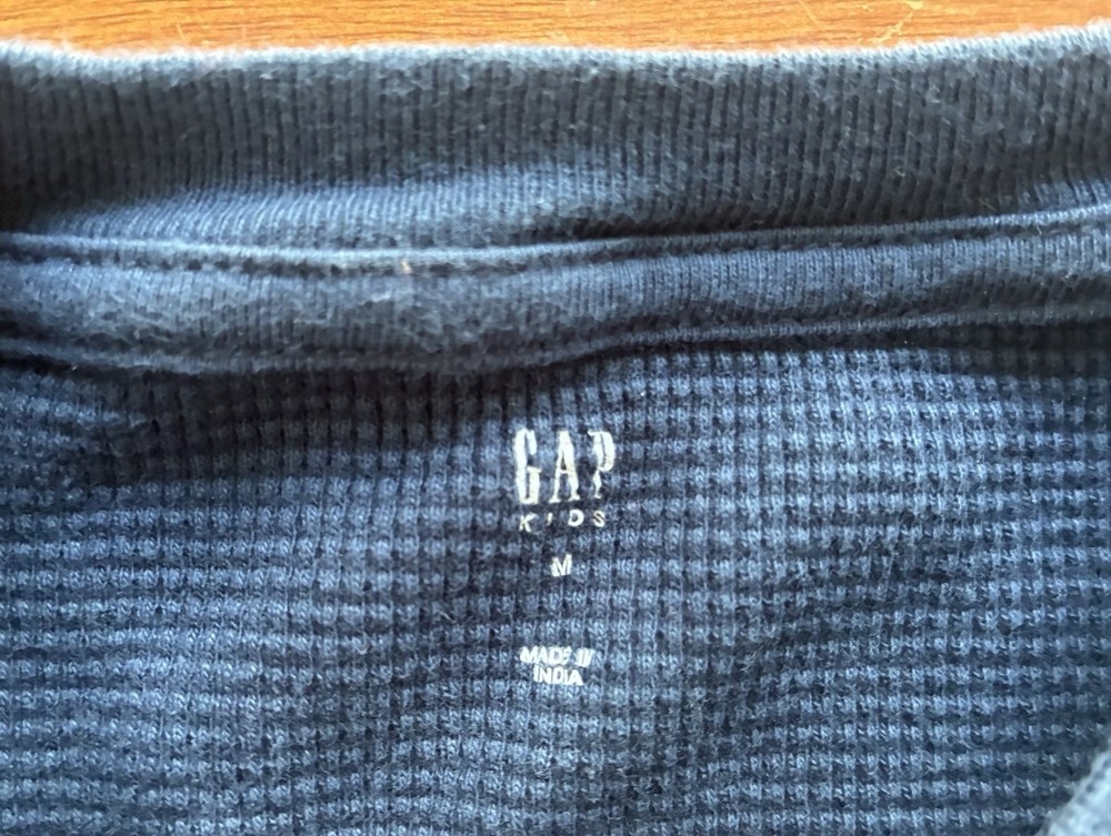 Gap Kids Boys Solid Navy Blue 100% Cotton Thermal Crewneck Long Sleeve Shirt M. Condition is pre-owned. Smoke free, pet free home. Shipped via USPS Ground Advantage. In very good condition. Free of rips or stains.