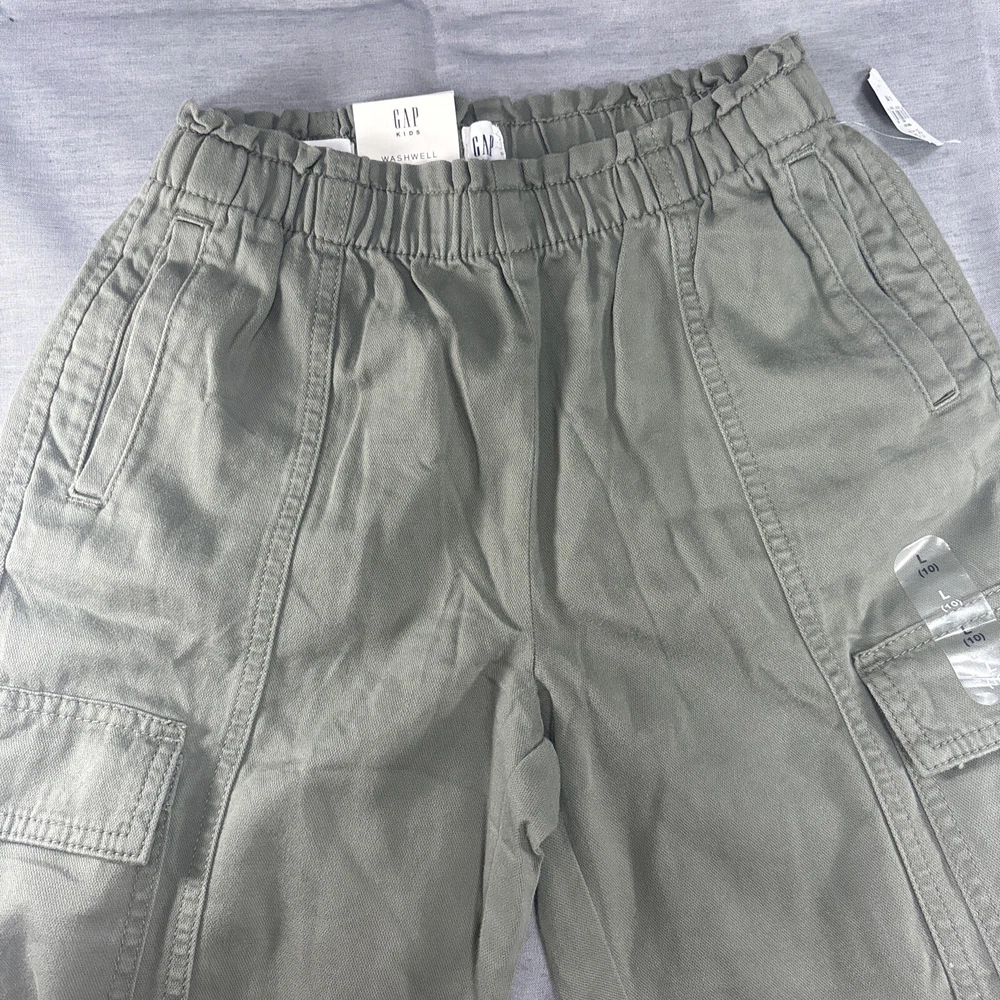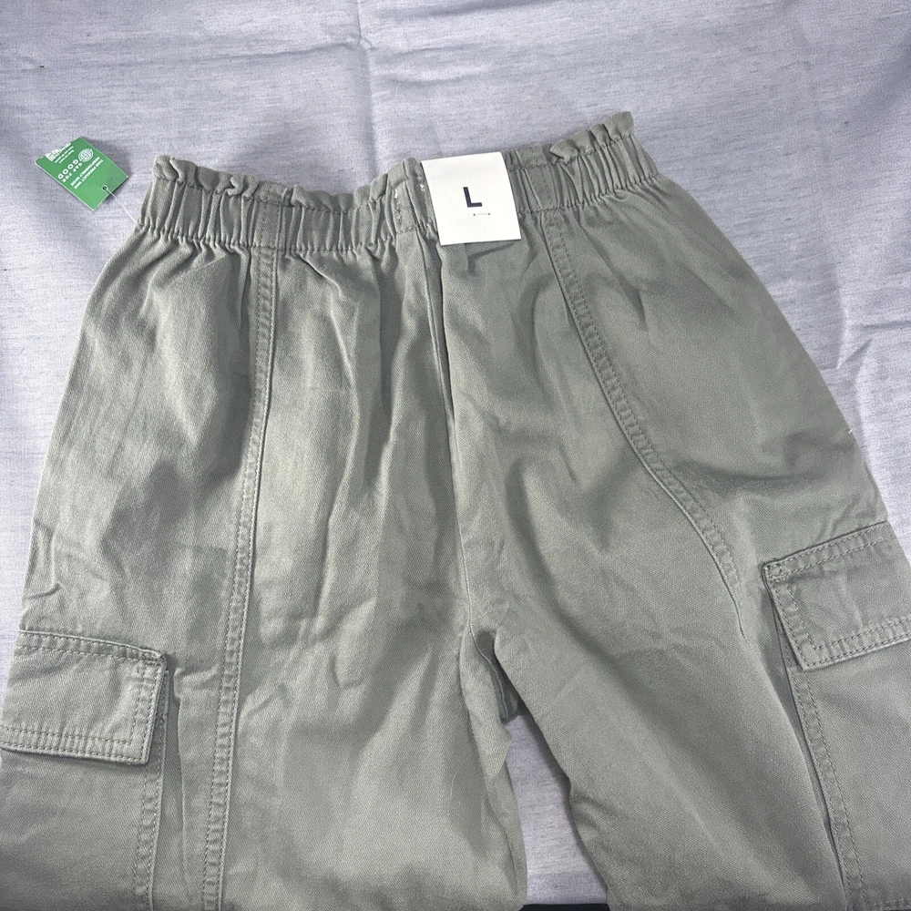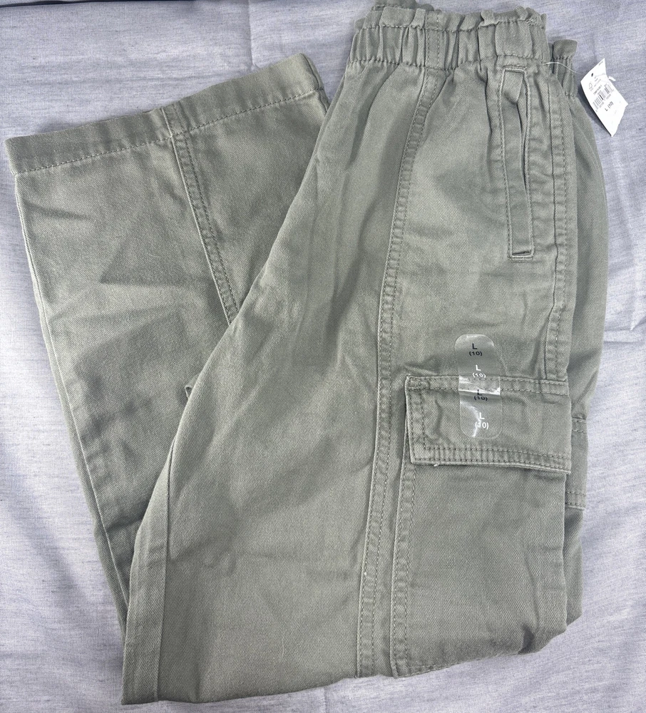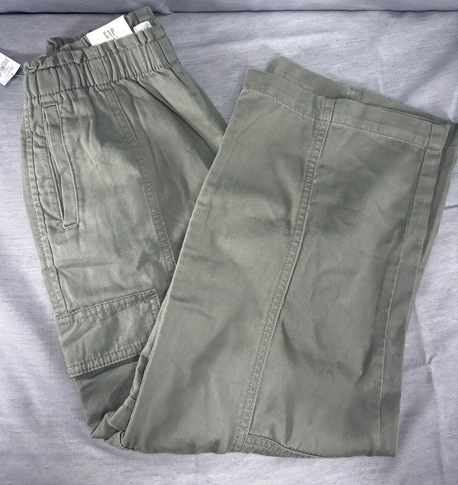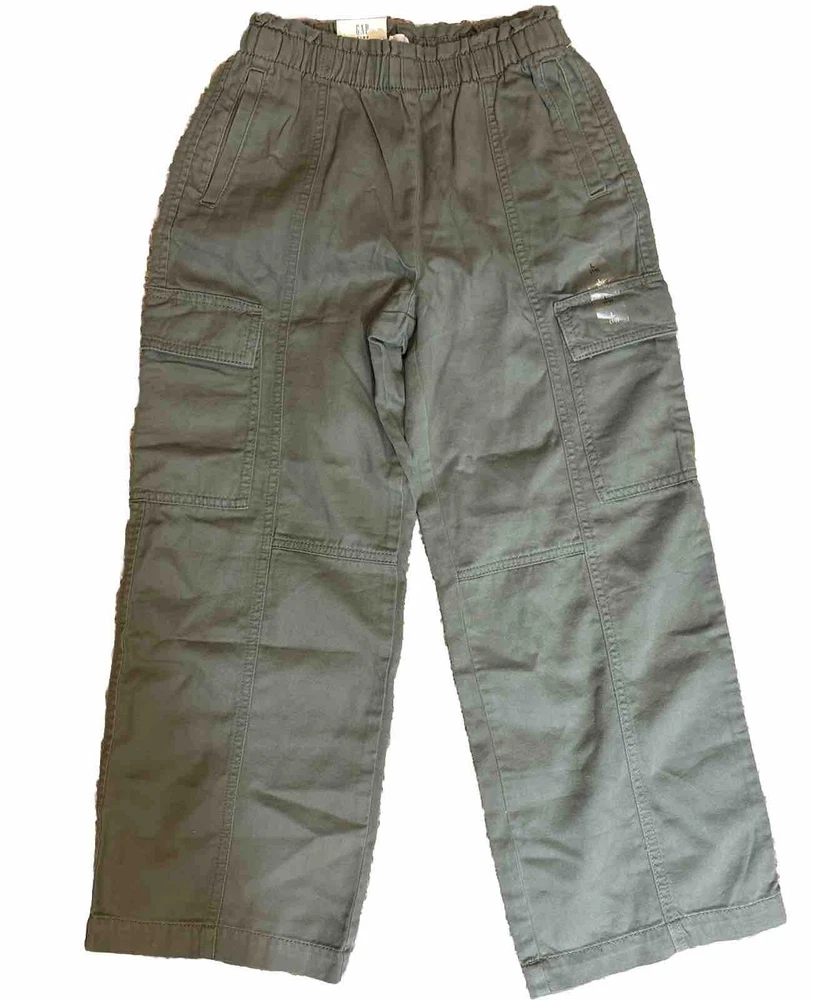 Add some style and comfort to your little girl's wardrobe with these Gap Kids cargo pull-on pants. The pants come in a beautiful green color and are made of high-quality cotton material that is perfect for all seasons. The pants feature a wide leg opening, making them suitable for various activities like play, walking, or school. These pants also come with pockets, making them an ideal choice for travel, activewear, party, or casual wear. The pants are machine washable, making them easy to care for. They are available in size L and are perfect for girls who love to stay stylish and comfortable. Get your hands on these versatile pants for your little girl today! New. Last two photos show best the color. Please see photos.