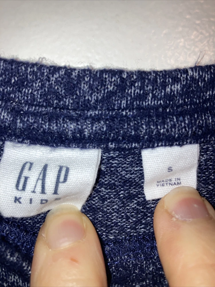 Gap Kids Girl’s Size Small (6/7) Long Sleeve T Shirt Navy With Sequins (9-166). Good pre owned condition. No holes, stains, etc. Rhinestone bling on front of shirt. Has some stretch. Some light wash wear. Smoke free, pet friendly home.