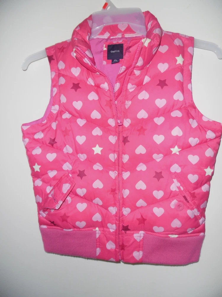 Gap Kids Pink Heart Star Prints Girls Vest Sz XXL 14/16 Armpit-armpit: 19" Length: 21" Lining: none Zipper: Yes Buttons: none Pockets: none AT Combined Shipment: USA : Highest item shipping cost + $2. for each subsequent item.Or, you can purchase as many items as you choose and pay the flat rate of $15.45 for your Priority Mail Large Flat Rate Box which covers your entire order. Please read the disclaimer below. INTERNATIONAL SHIPMENTS: Highest item shipping cost + $5. for each subsequent item. Please read the disclaimer below. DISCLAIMER on Shipping Costs: Our intention is to keep our shipping costs as low as possible. However, depending on the item purchased (weight) and the destination, shipping rates can vary; especially 14 Day’s No Questions Asked Returns Policy: Your satisfaction is very important to us. We have a 14 days NO QUESTIONS ASKED returns policy. The item must be returned in the condition in which it was purchased. If there are labels/tags they should not be removed. If they are, the item will be sent back to you. ANY SHIPPING COSTS WILL NOT BE REFUNDED. BOTH WAYS, receiving and any returns. Please contact us for the return shipping address and authorization. ALL COMMUNICATIONS MUST BE IN WRITING & TAKE PLACE THROUGH THE EBAY SITE ONLY. No private direct email correspondence. A customer care rep. will respond to you within 24 hrs (Mon-Fri). Once we have received the merchandise and inspected it, please allow 72 hours for a refund to be issued. NO See my other listings for more great items! We accept PAYPAL. Also we have a virtual terminal with PayPal through which we can accept Visa, MasterCard, Amex, and Discover. If you do not have a PayPal account, it takes virtually minutes to open International shipments: PLEASE DO NOT PAY until we determine your shipping costs. Most of our items also have an International Flat-Rate. Although, if due to the destination or the weight we are unable to honor the rate mentioned in the item’s listing, we will cancel your order and leave you positive feedback. Usually we use the US Postal Service. The best international rate for an international shipment is First Class (up to 4 lbs.)If your items exceed 4 lbs. we may pack them into two separate packages (and notify you of this).You still are eligible to take advantage of the combined shipping rates, even if we have packed them into two separate packages. The fees for packaging, shipping, insurance, Customs Duty Charges on international shipments are all the responsibility of the Buyer and are not included in the purchase price. If the item(s) are gifts, we could indicate “GIFT” on the customs form so you would avoid paying more on duty. \ Add a map to your own listings. FREE Trial!