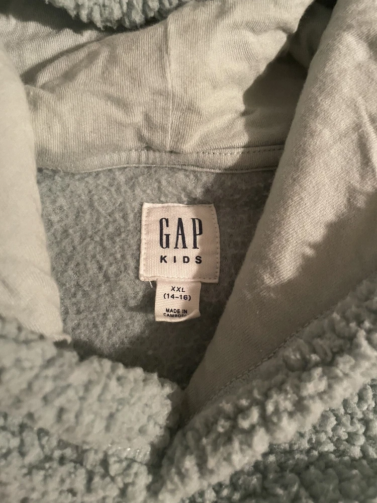 Is an XXL in kids size but can fit an adult in S and M sizes No stains, marks or rips; completely new with no tags Can fit 14-16 year olds The teal color appears darker and more vibrant than in the picture No returns Thank you :)