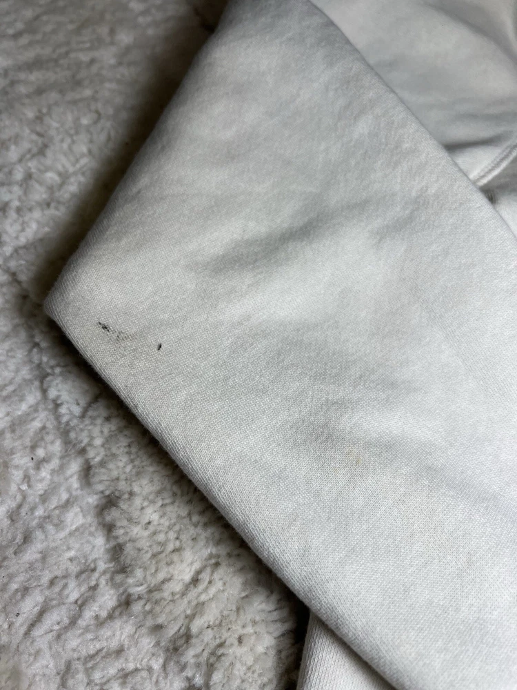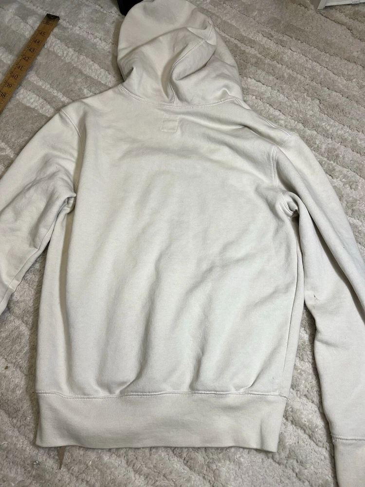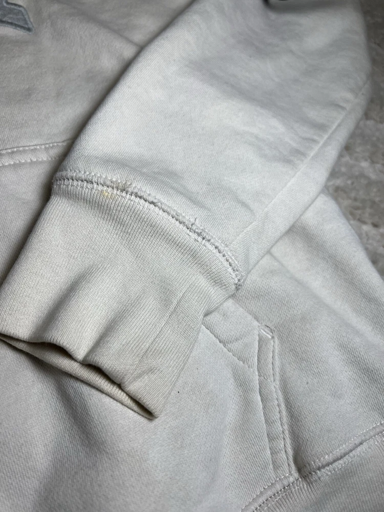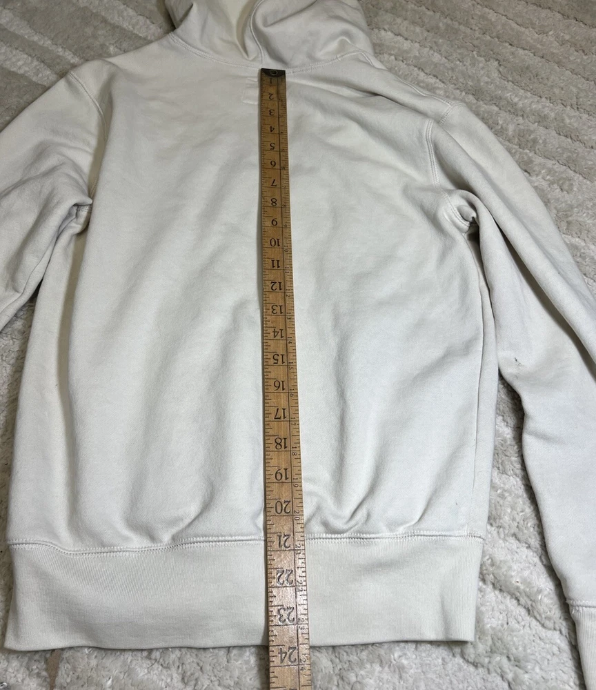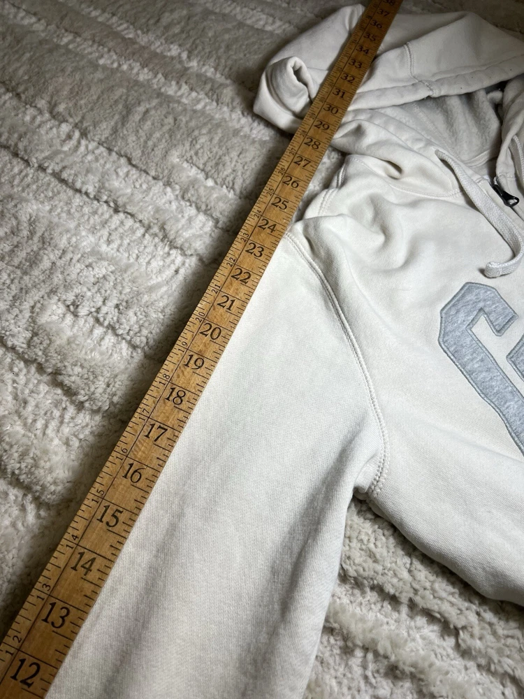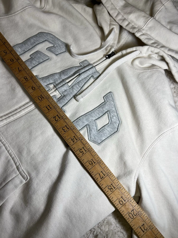 Gap Size XS Cream Gray Long sleeve Logo Full Zip Hoodie Sweater Pre-owned Shows signs of usage such as staining around edges of sleeves, back and front of sleeves Please review all photos Comes from a smoke and pet free home Shipped out with care