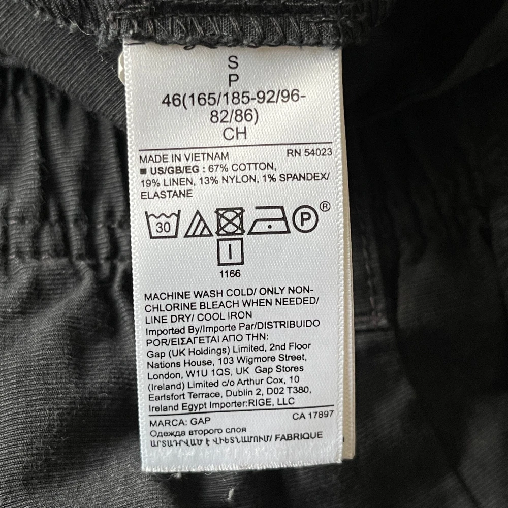 * Gap Women Relaxed Tapered Pants Size S Black Pockets Cotton Linen Elastic Waist * *Good Pre-owned Condition *Please see photos for approximate measurements (in inches), fabric make, washing instructions, and other notable details. *Purchased items are shipped out next business day.