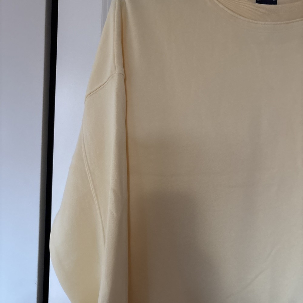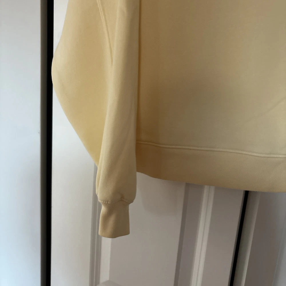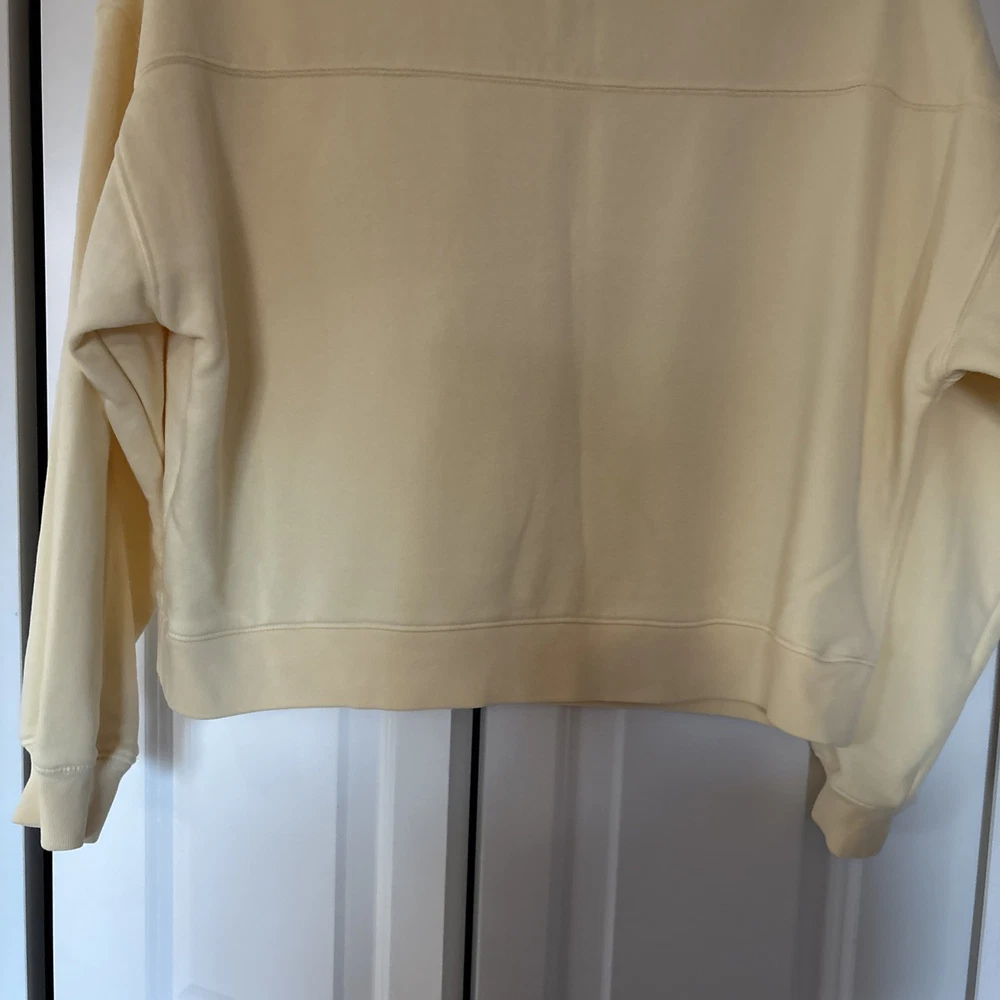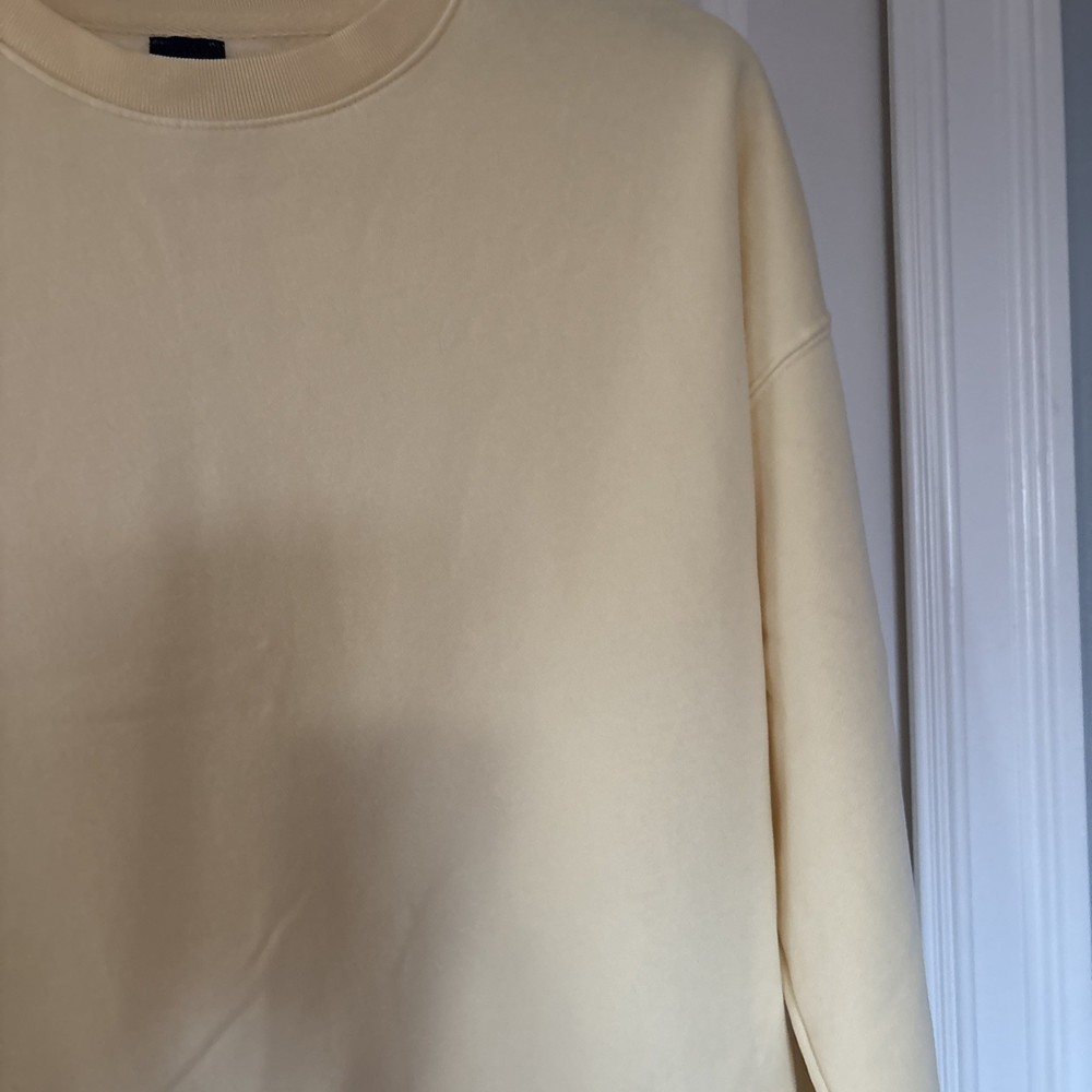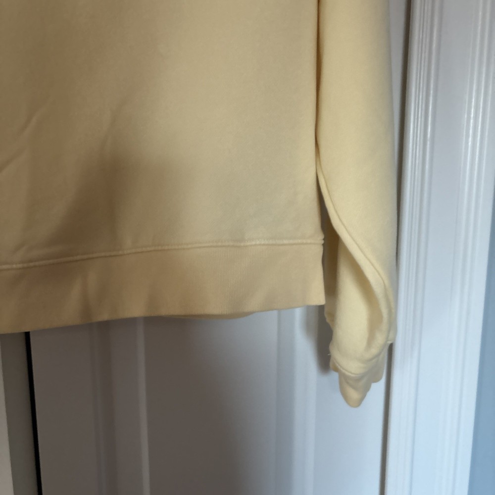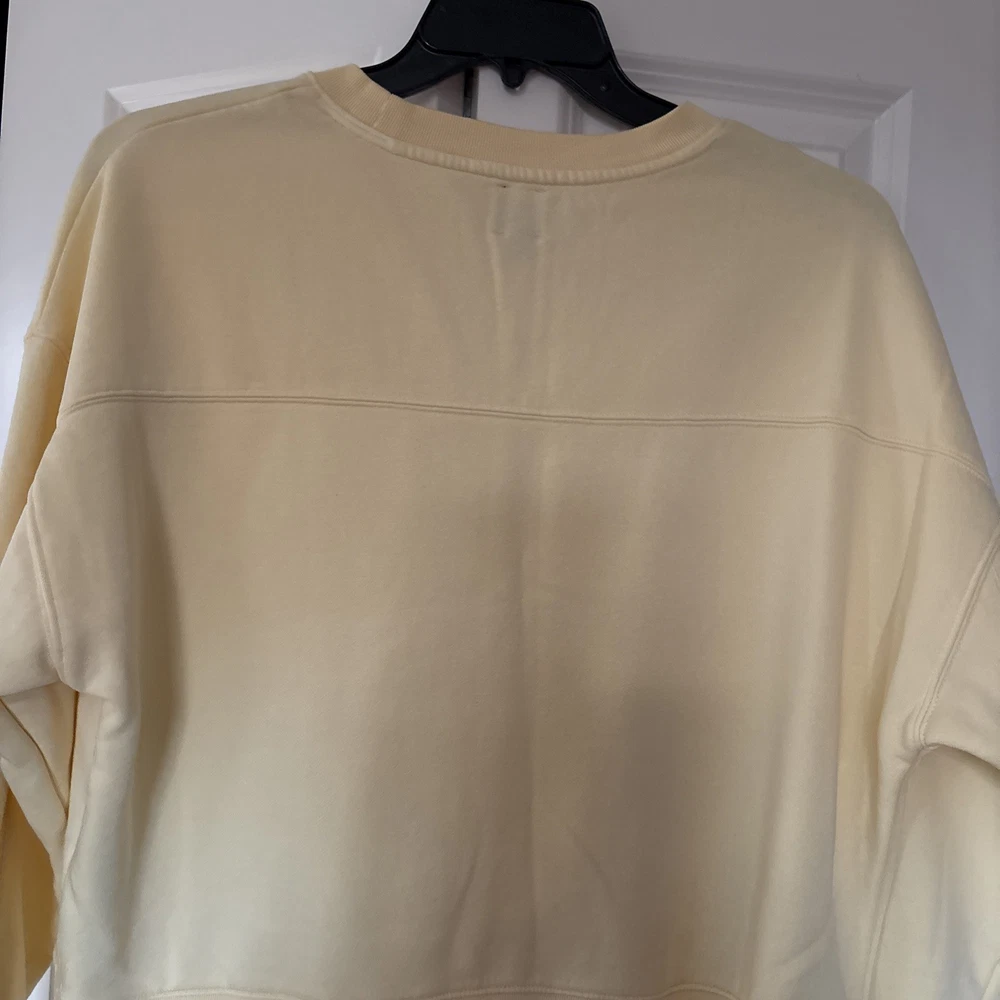 The Gap Women's Size Medium Light Yellow Sweatshirt is a stylish and comfortable pullover sweatshirt perfect for activewear. Made of machine washable cotton with a crew neckline, long sleeves, and raglan sleeves, this sweatshirt is ideal for winter, fall, and spring seasons. The solid yellow color and logo accents add a touch of personality to the classic design. With a regular fit and slightly cropped length, this sweatshirt is versatile and can be worn for various activities such as walking.