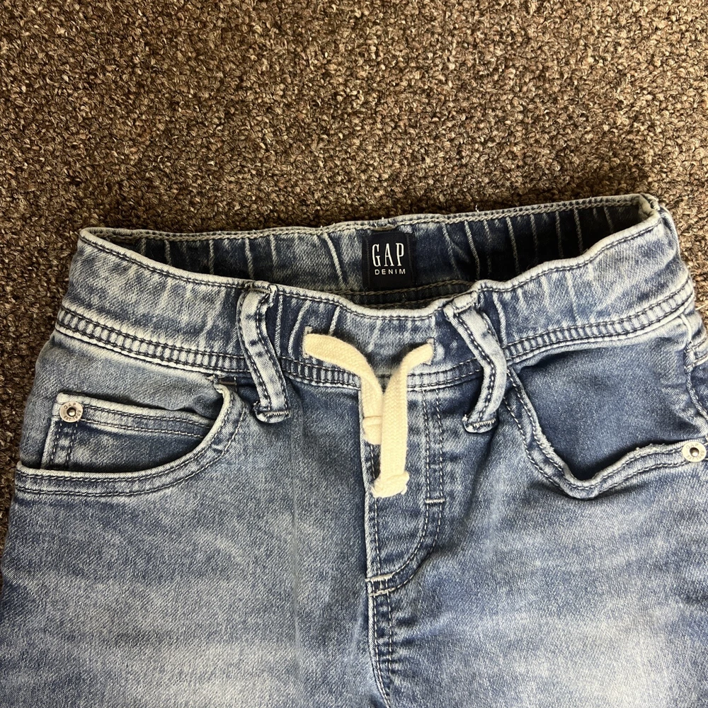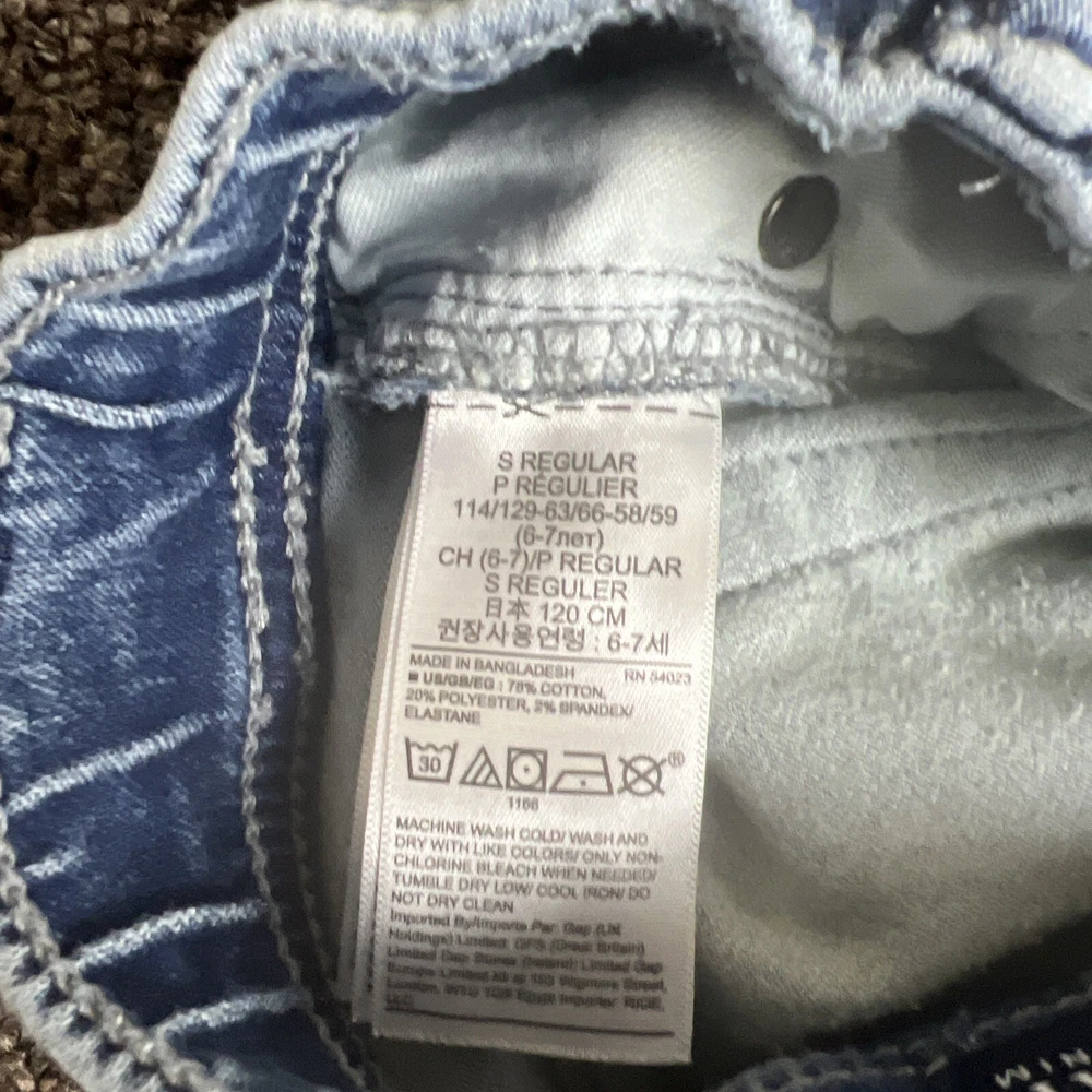 Closure: Pull On Inseam: 21 in Department: Girls Fit: Slim Size: 6-7 Color: Blue Features: Elastic Waist, Stretch Seller Notes: “Used in good shape, washed and ready for a new home.” Style: Straight Type: Jeans Stock: B10 Brand: Gap Material: Cotton